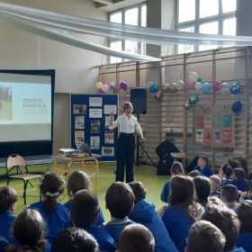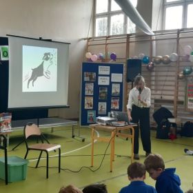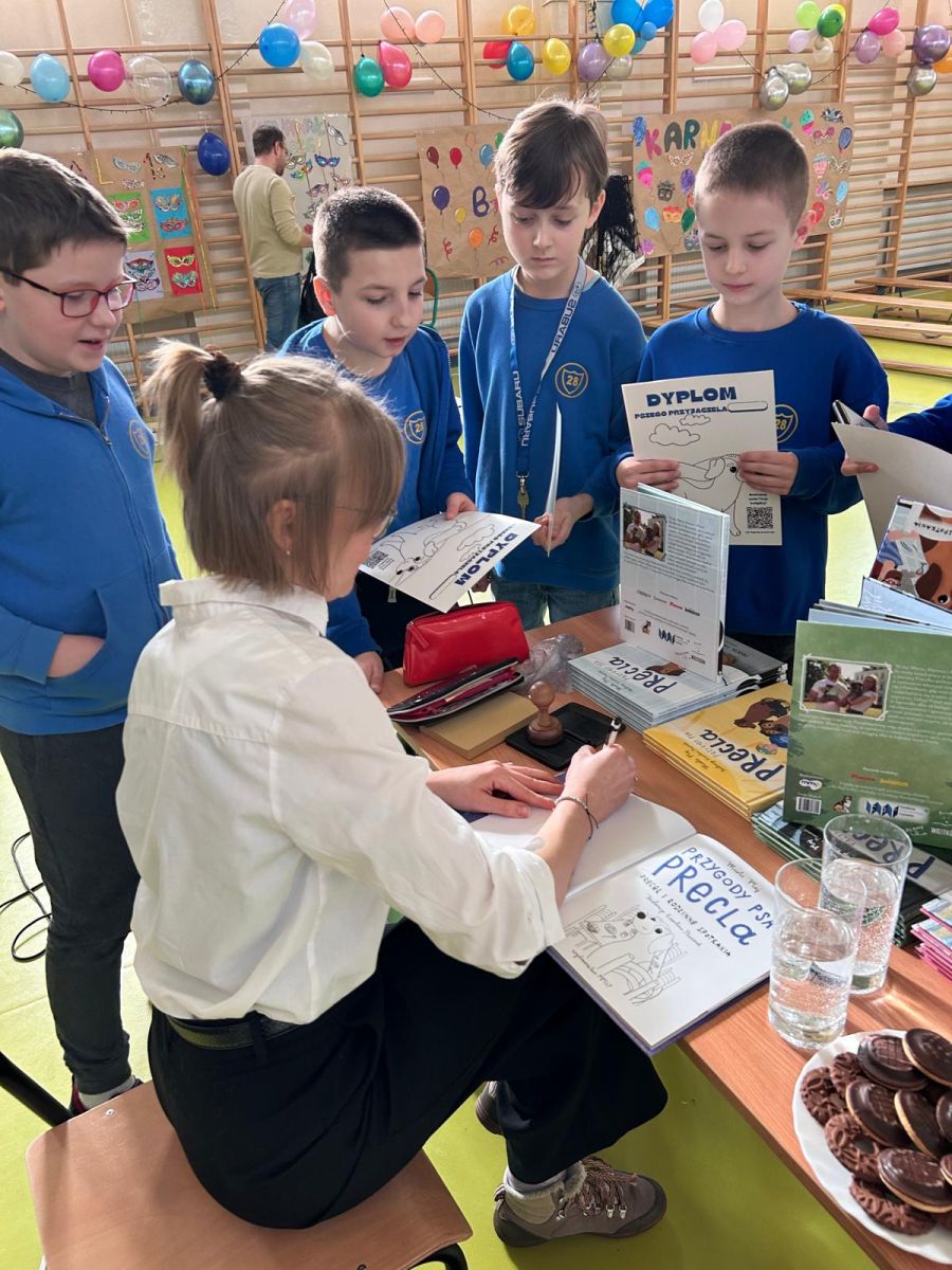 Podczas spotkania uczniowie poznali bohaterów serii książkę o przygodach uroczego psa Precla. Ponadto sprawdzili swoją wiedzę podczas wykonywania quizu Zgaduj Zgadula. Aktywnie włączyli się również do krótkiej gimnastyki zaproponowanej przez autorkę.