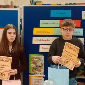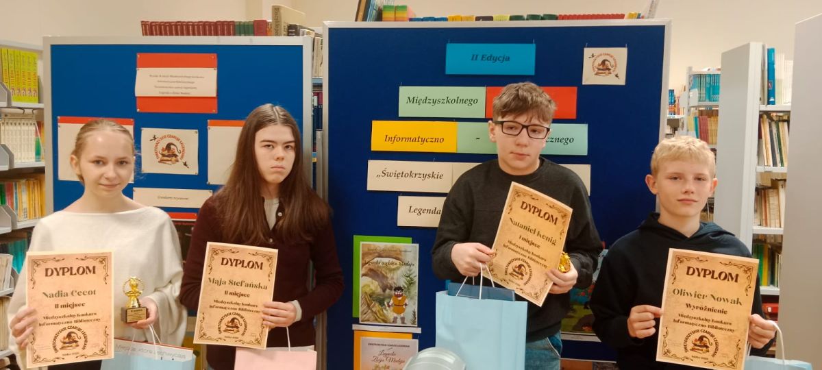W dniu 24.04.2026 r. w naszej szkole odbyło się uroczyste wręczenie nagród laureatom II edycji międzyszkolnego konkursu informatyczno-bibliotecznego „Świętokrzyskie czaruje legendami. Legenda o Zbóju Madeju”.