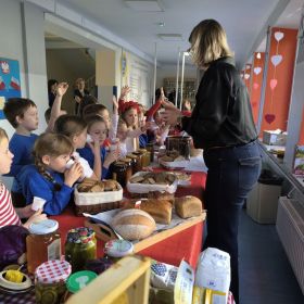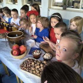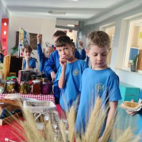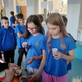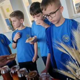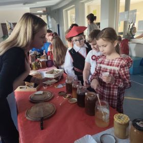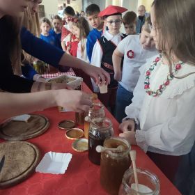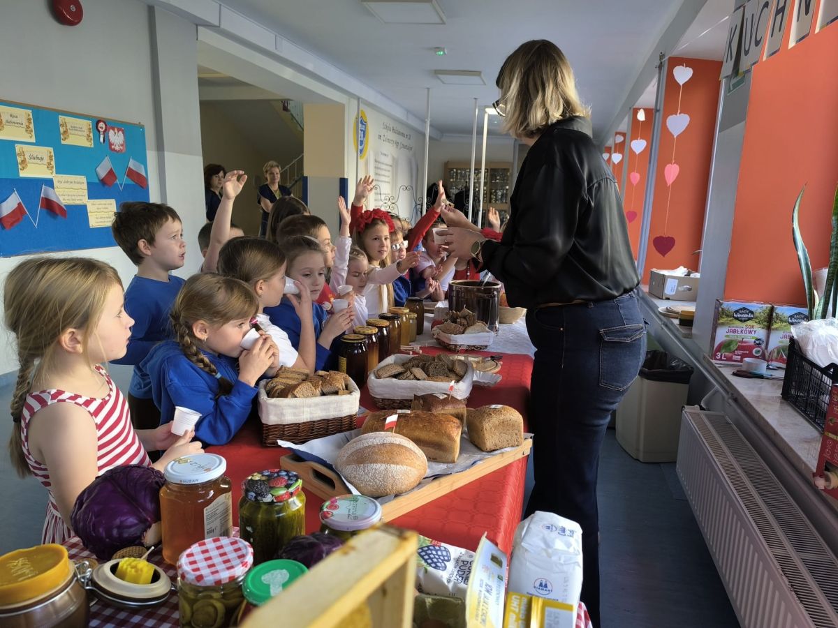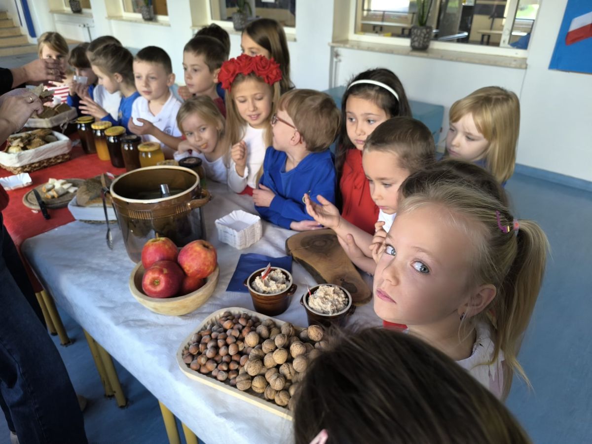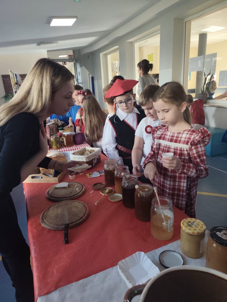 Jednym z głównych punktów programu była degustacja lokalnych produktów i przysmaków. Dzieci mogły spróbować pysznych miodów, tradycyjnego chleba ze smalcem, kiszonek oraz tłoczonych soków. Ta kulinarna podróż po regionie pozwoliła najmłodszym nie tylko poznać smaki Polski, ale także dowiedzieć się, jak ważne są tradycje kulinarne w naszym kraju.