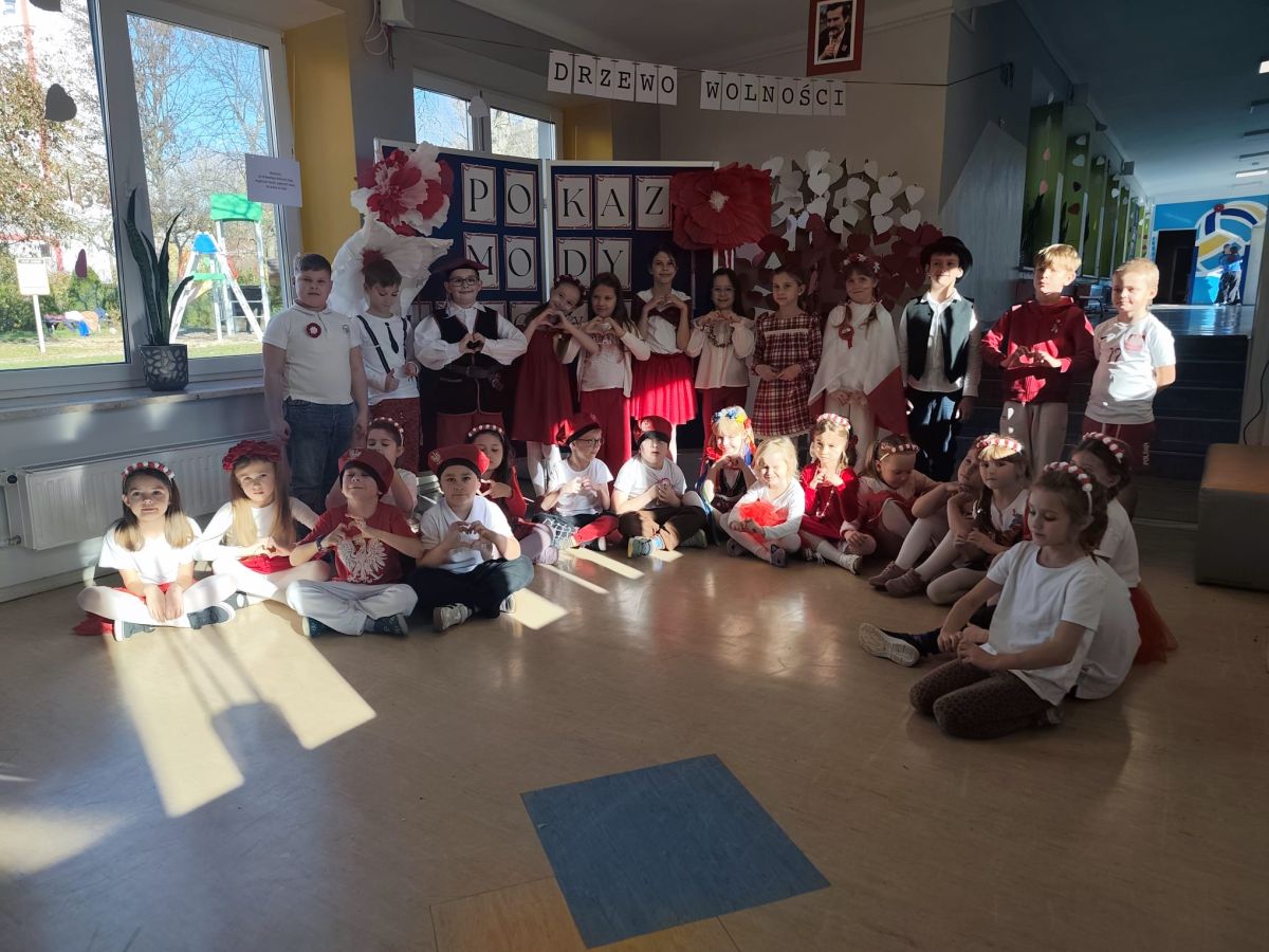 Nie zabrakło również pokazów mody regionalnej. Uczniowie z dumą prezentowali stroje w biało-czerwonych barwach, które symbolizują naszą narodową tożsamość. Pokazy te były nie tylko okazją do zabawy i kreatywności, ale również sposobem na poznanie polskich tradycji i kultury.