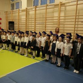 Potem uczniowie klas pierwszych i ich starsi koledzy zaprezentowali piękny program artystyczny, po którym nastąpił główny punkt uroczystości, jakim było ślubowanie. Drżącym głosem, dumni i wzruszeni uczniowie, z pełną powagą uroczyście powtarzali słowa przysięgi. Po ślubowaniu każdy dostąpił zaszczytu Pasowania na Ucznia dokonanego symbolicznym ołówkiem przez Panią Dyrektor Jadwigę Grzyb i Panią Wicedyrektor Joannę Eliks.