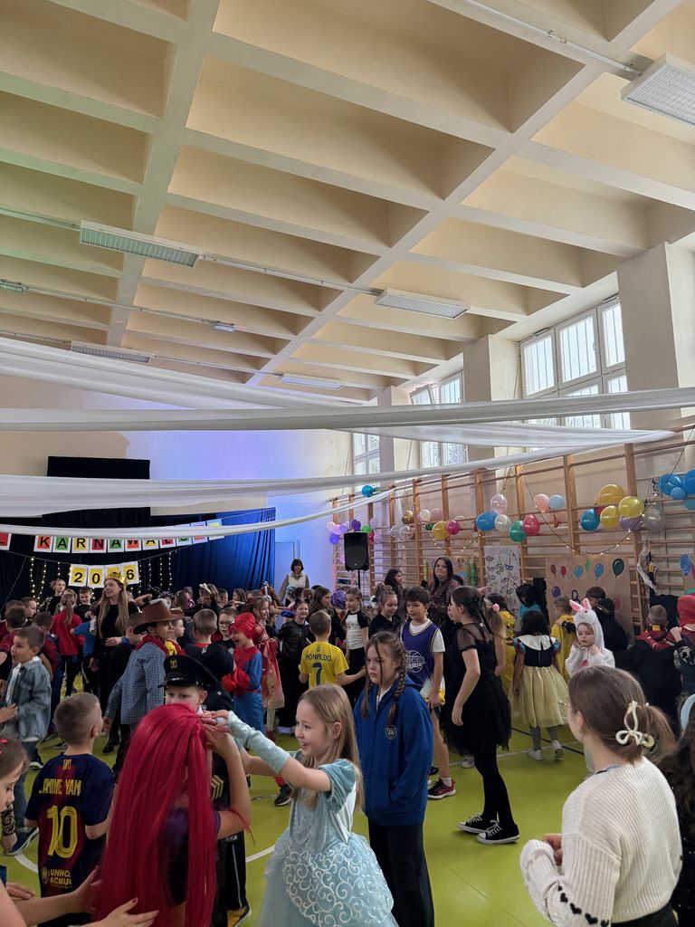 🎭🎉 Bal karnawałowy klas 1–3 🎉🎭 Ale to była świetna zabawa! 💃🕺 Kolorowo, tanecznie i z uśmiechami od ucha do ucha – tak w skrócie można opisać nasz bal karnawałowy dla klas 1–3. 🎶 Wspaniałe tańce i zabawy zostały zorganizowane przez nauczycielki naszej szkoły, które jak zawsze zadbały o fantastyczną atmosferę. 🎨 Dekoracje? W całości wykonane przez naszych zdolnych uczniów – kreatywność nie miała granic! 👗🎩 Rodzice również stanęli na wysokości zadania, pomagając swoim pociechom w poszukiwaniach pomysłowych i barwnych strojów. Każdy był zaangażowany, co sprawiło, że zabawa naprawdę się udała ❤️ Na parkiecie nie zabrakło również naszej wspaniałej Pani Dyrektor, która uwielbia naszych uczniów i z ogromnym oddaniem wspiera całą szkolną społeczność. Dziękujemy wszystkim za wspólnie spędzony czas – takie chwile zostają w pamięci na długo! ✨📸