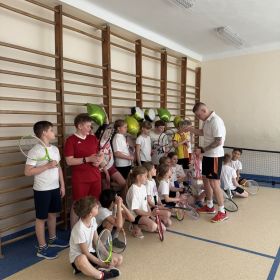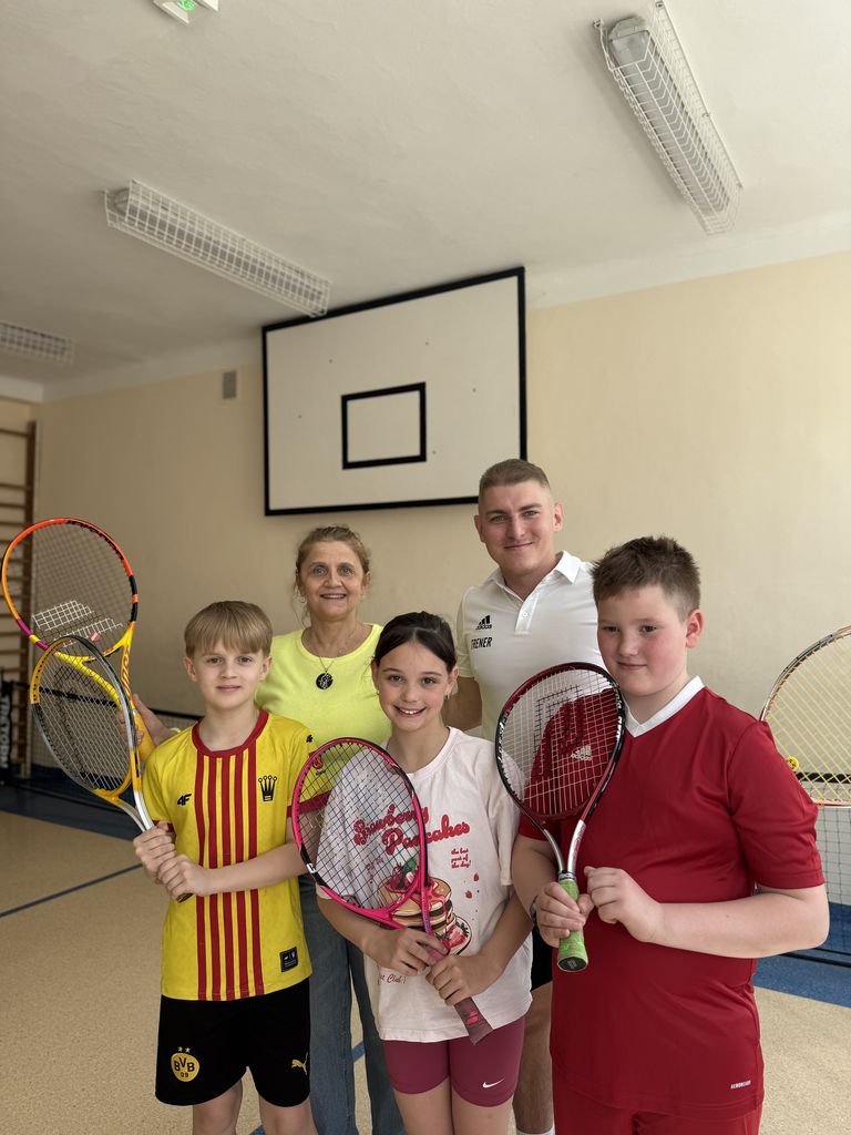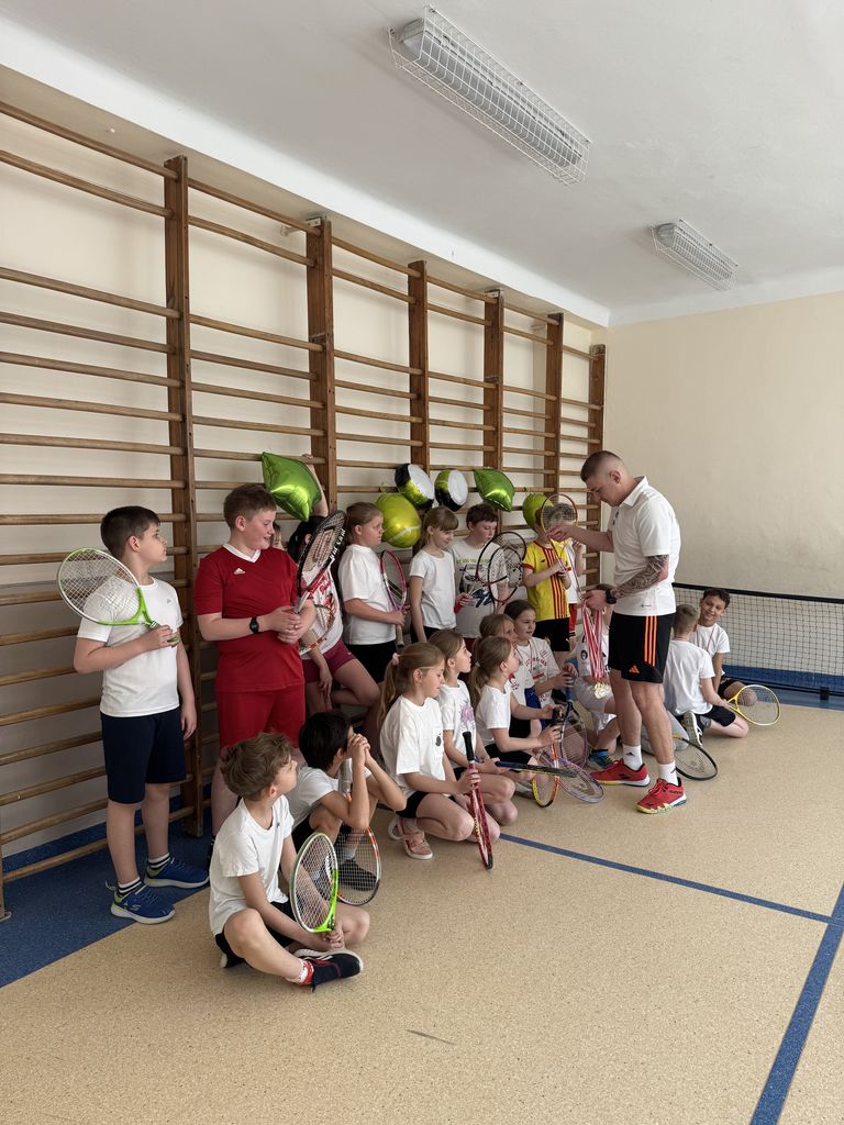 🎾 Wczoraj nasza klasa 3c miała wyjątkową okazję uczestniczyć w warsztatach tenisowych! Odwiedził nas trener Damian Jasiński z Centrum Sportów Rakietowych MUKS Gemik w Kielcach, który poprowadził niezwykle ciekawe i aktywne zajęcia. 🎾