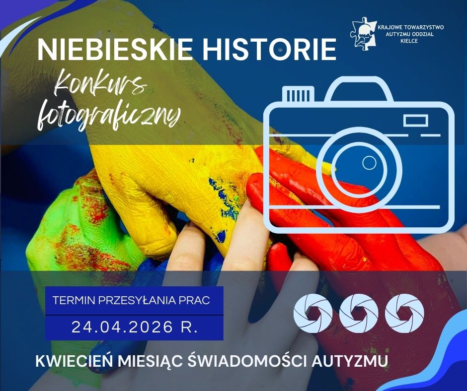 z okazji Miesiąca Świadomości Autyzmu – Krajowe Towarzystwo Autyzmu Oddział Kielce serdecznie zaprasza uczniów klas 4–8 do udziału w konkursie pt. „Niebieskie historie".