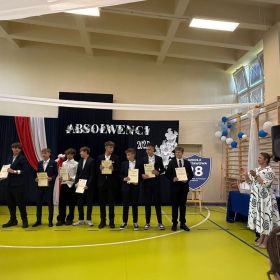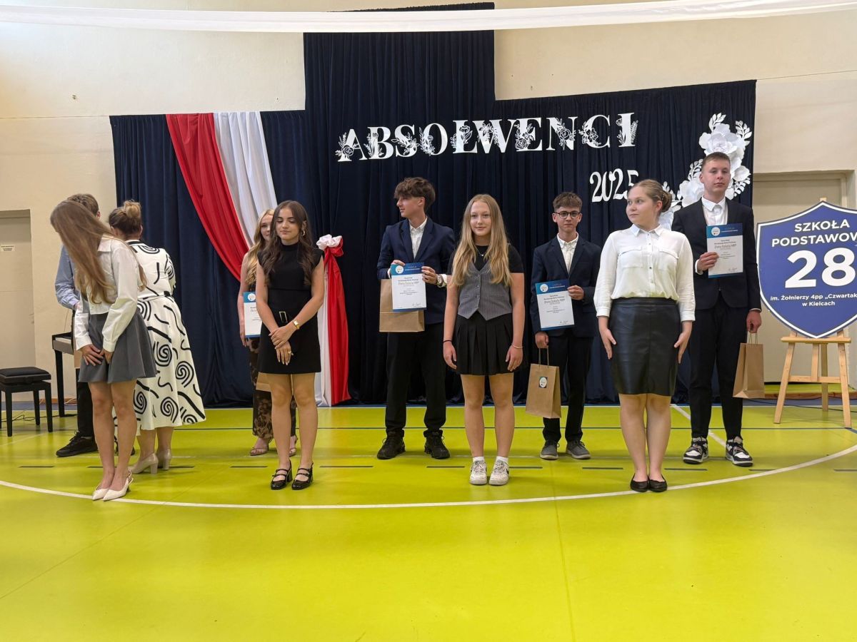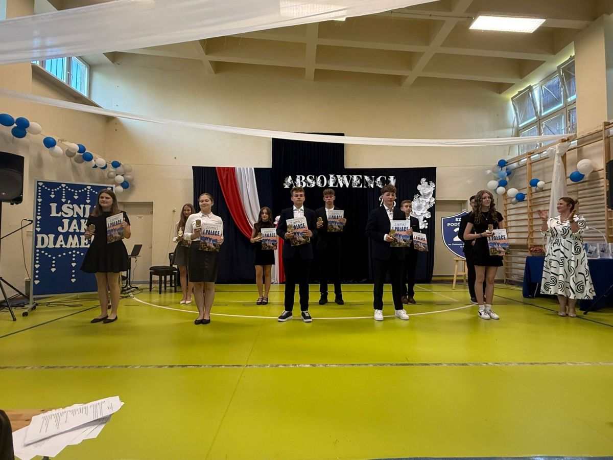 „Lśnij jak diament” – pod takim hasłem z wielkim sentymentem i dumą żegnaliśmy uczniów klas ósmych. To wyjątkowe wydarzenie miało na celu podkreślenie ich osiągnięć, przemiany i gotowości do kolejnych etapów edukacji. Uczniowie, nauczyciele i rodzice wspólnie świętowali zakończenie ważnego rozdziału, życząc młodzieży samych sukcesów i niezłomnej wiary w siebie, aby mogli błyszczeć i rozwijać swoje talenty niczym diamenty.