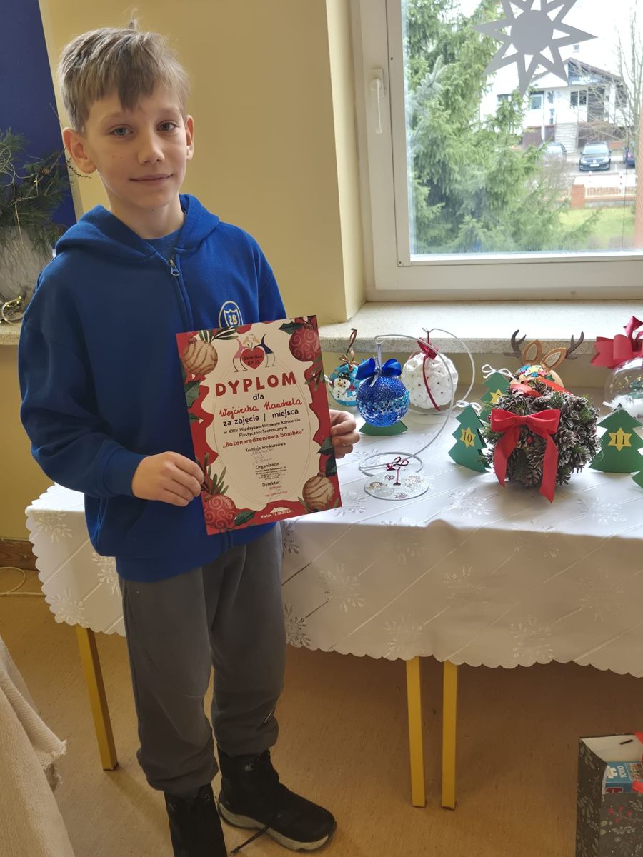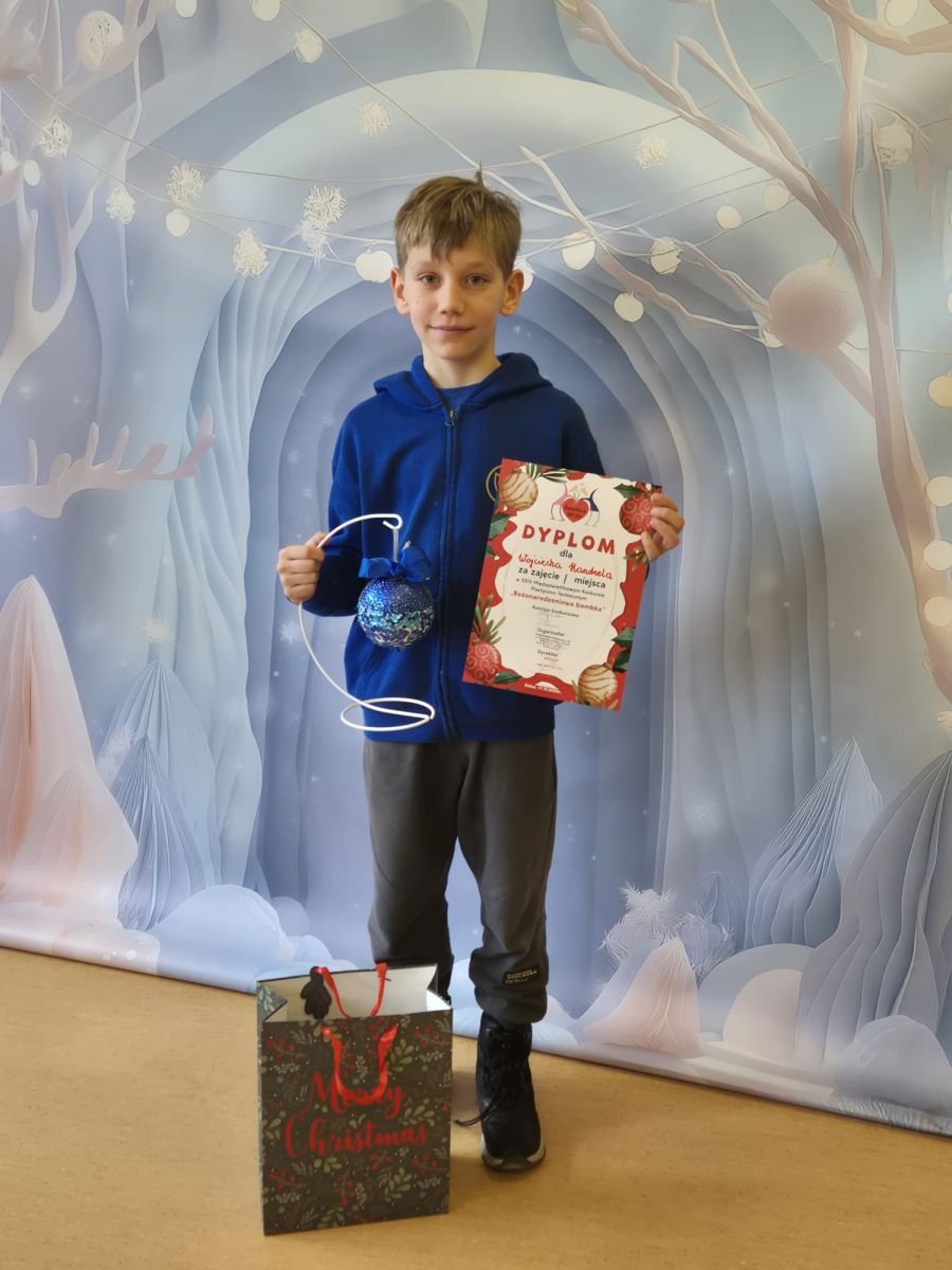 Z ogromną radością informujemy, że Wojtek Handzel - uczeń klasy 3b zdobył I miejsce w konkursie Międzyświetlicowym pt. „Bożonarodzeniowa Bombka”.