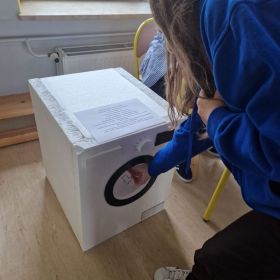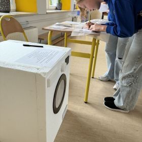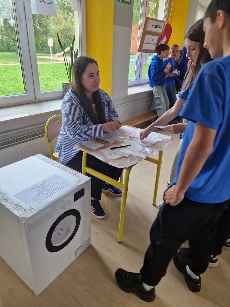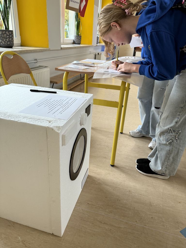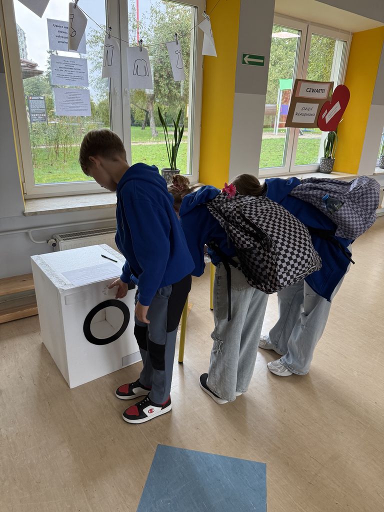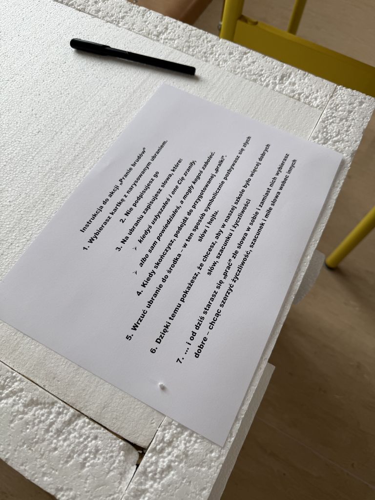 Drugiego dnia tygodnia o przeciwdziałaniu przemocy rówieśniczej w naszej szkole odbyła się akcja pt. „pranie brudów”. Uczniowie na symbolicznych kartkach z nadrukowanymi ubraniami mogli zapisać słowa które kiedyś usłyszeli albo powiedzieli a były przykre bądź krzywdzące dla innych. Następnie wrzucali je do specjalnie przygotowanej pralki i w ten sposób pozbywali się niechcianych słów :) Akcja cieszyła się sporym zainteresowaniem wśród uczniów i wywołała uśmiech na ich twarzach!