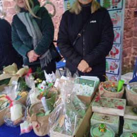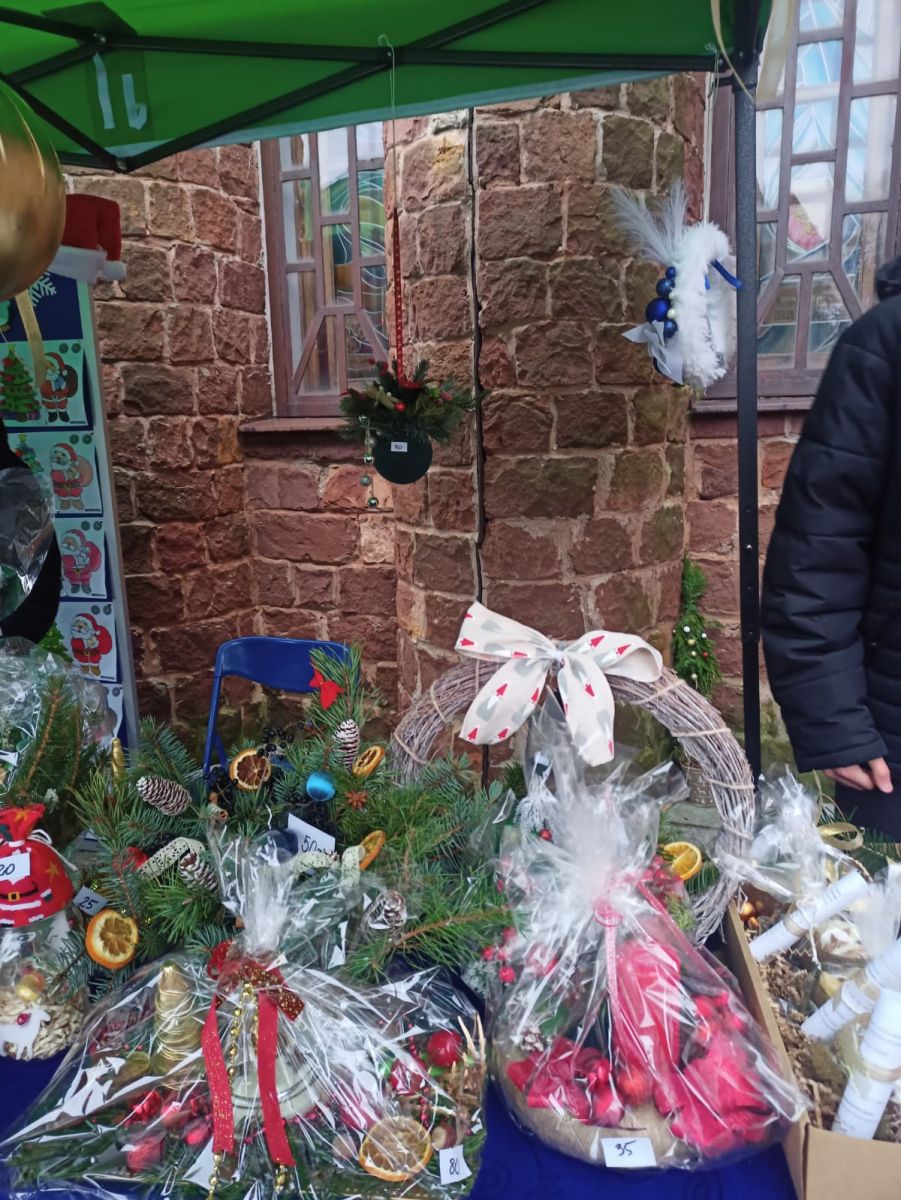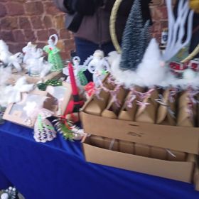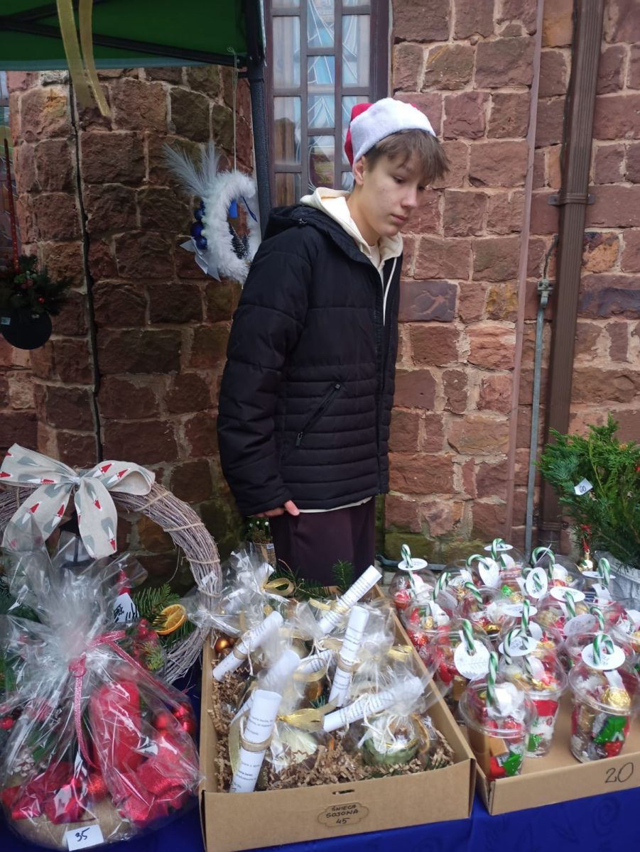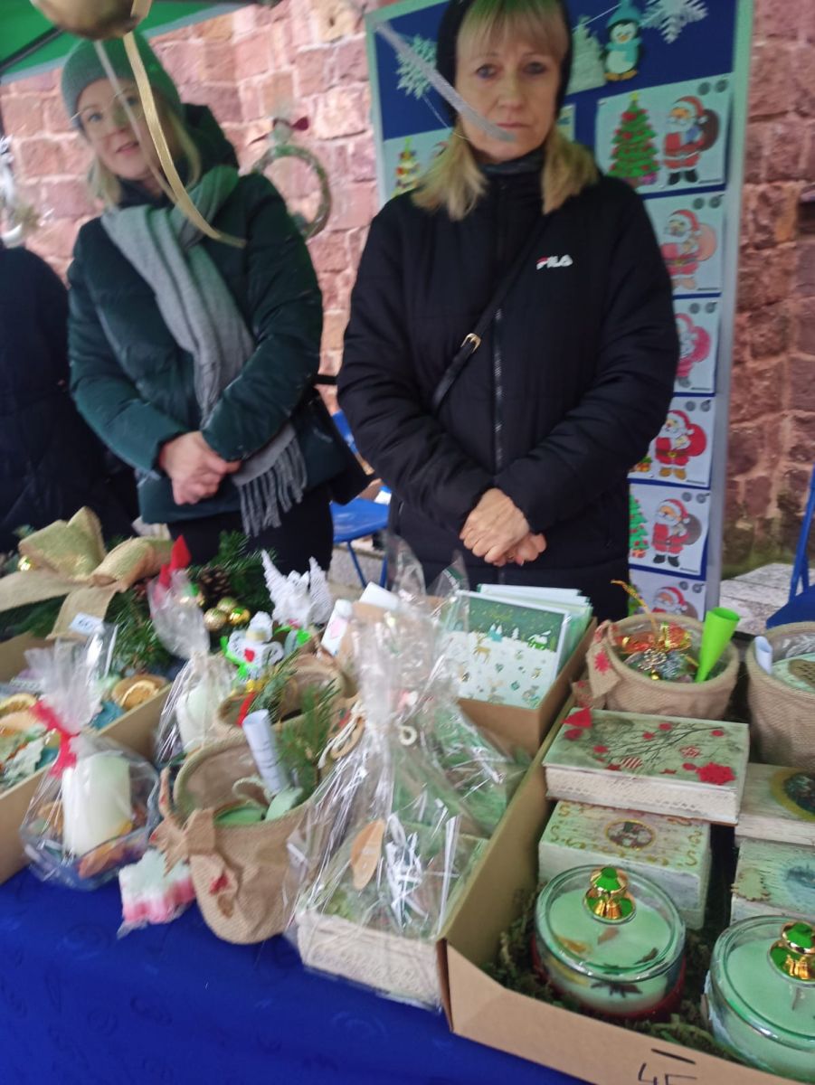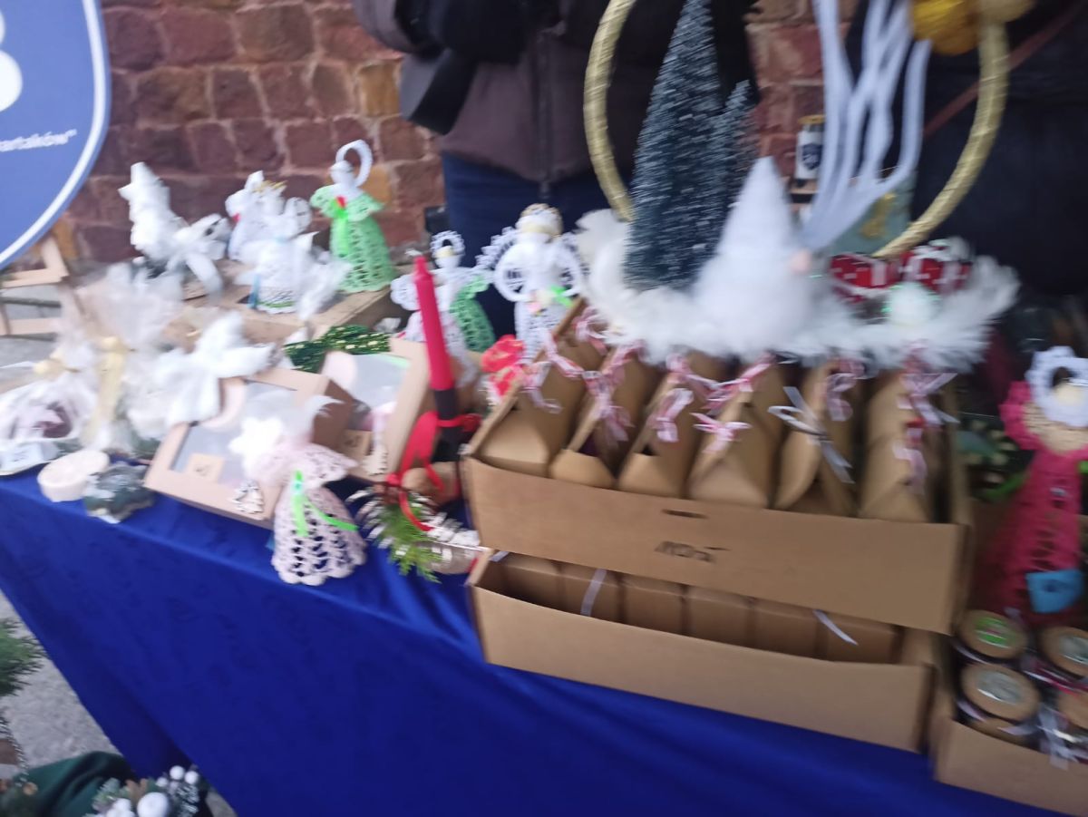 Od wczesnych godzin wolontariusze z zaangażowaniem dbali o estetykę ekspozycji oraz pomagali odwiedzającym kiermasz. Na stołach pojawiły się świąteczne ozdoby, ręcznie wykonane dekoracje, kartki bożonarodzeniowe oraz domowe wypieki, które cieszyły się dużym zainteresowaniem mieszkańców. Uczniowie z uśmiechem i życzliwością obsługiwali stoiska, udowadniając, że nawet najmłodsi potrafią aktywnie działać na rzecz