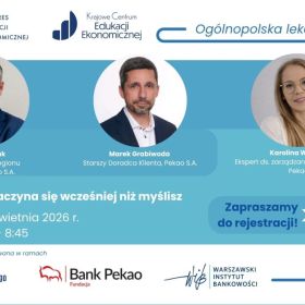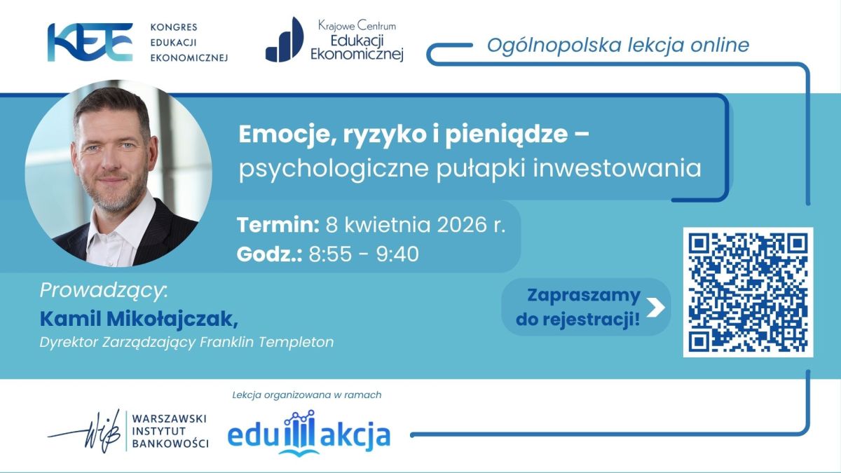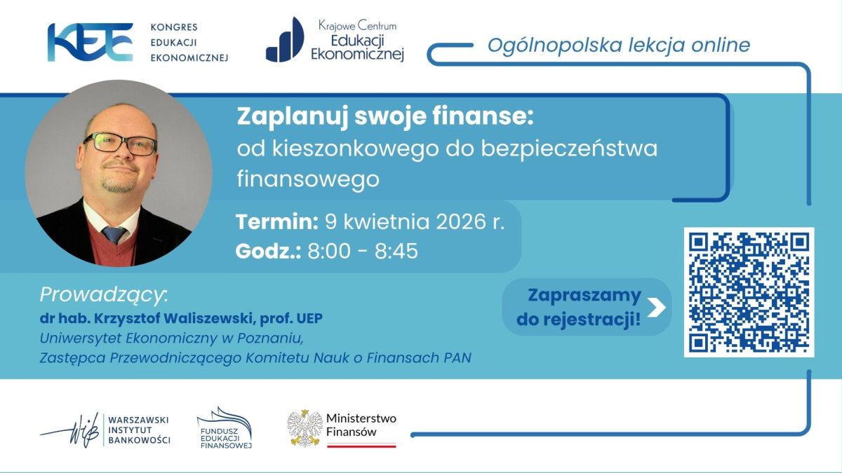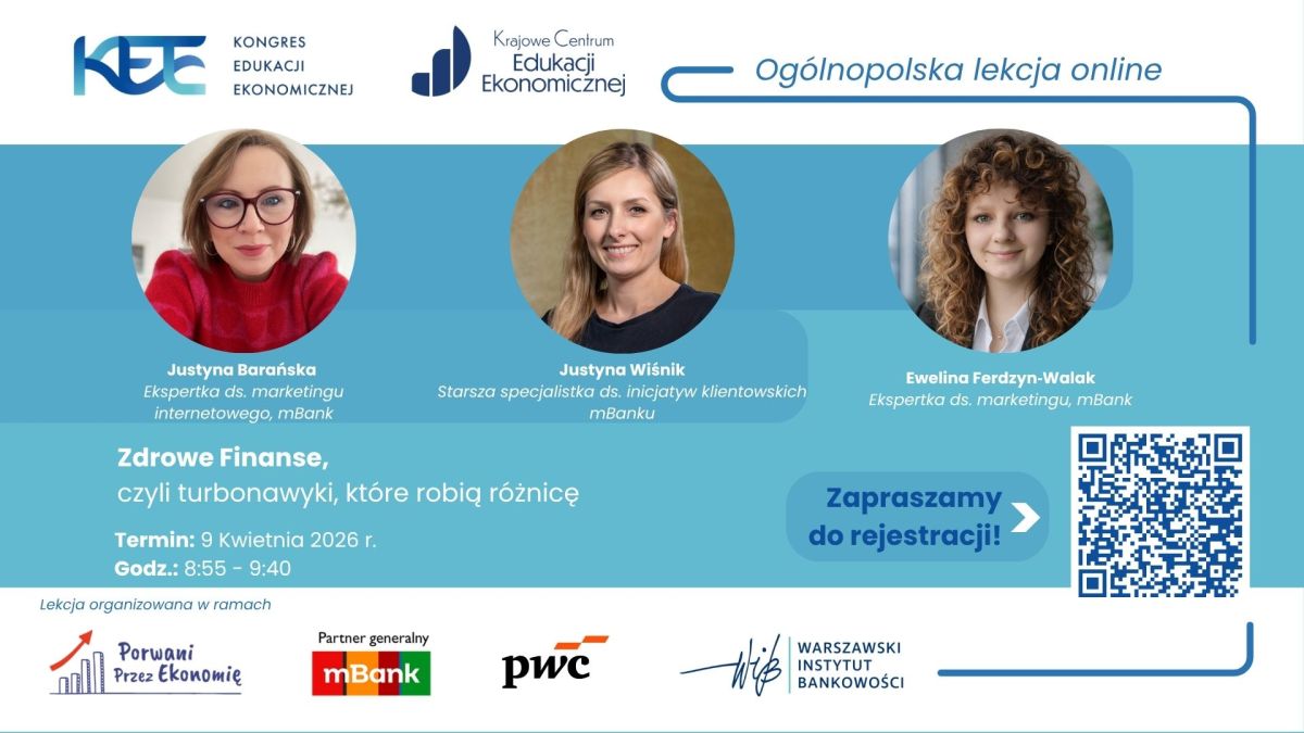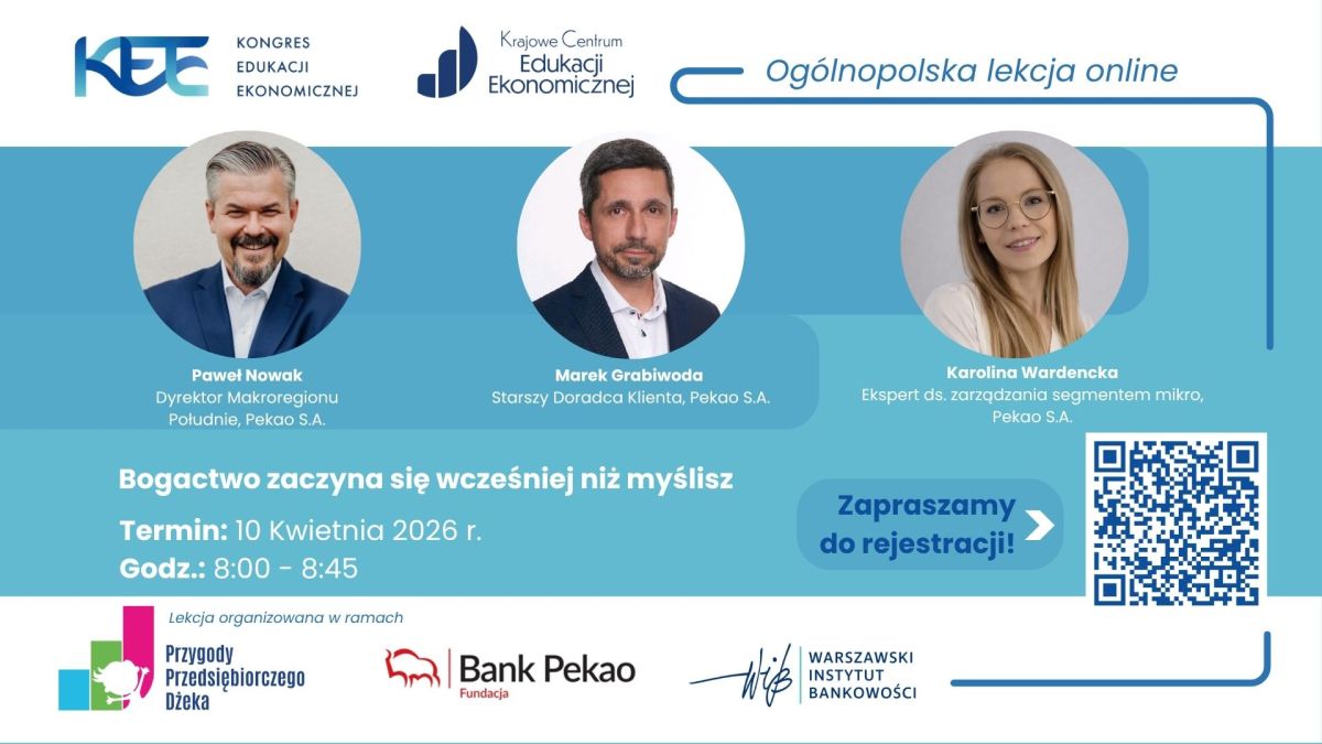 serdecznie zapraszamy nauczycieli oraz uczniów starszych klas szkół podstawowych i ponadpodstawowych do udziału w ogólnopolskich lekcje online, które odbędą się w ramach jubileuszowej 10. edycji Kongresu Edukacji Ekonomicznej w dniach 8-10.04.2026 r.