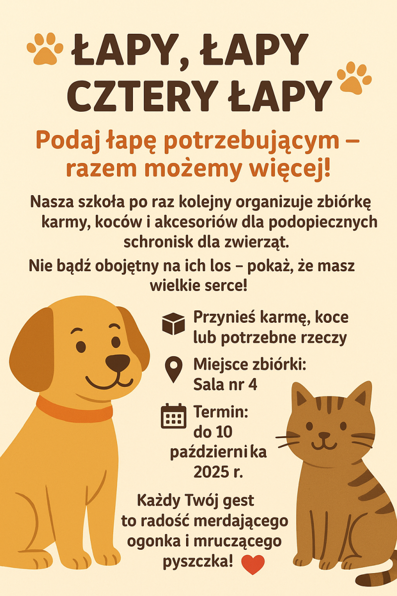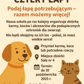 Nasza szkoła po raz kolejny organizuje zbiórkę na rzecz zwierząt ze schroniska.