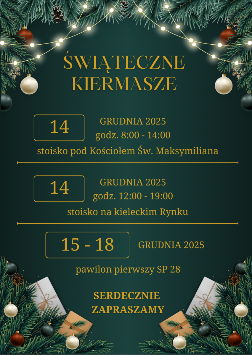 Serdecznie zapraszamy na bożonarodzeniowe kiermasze.