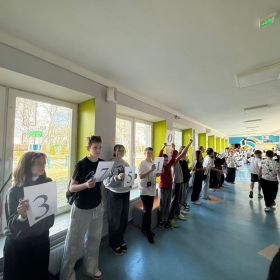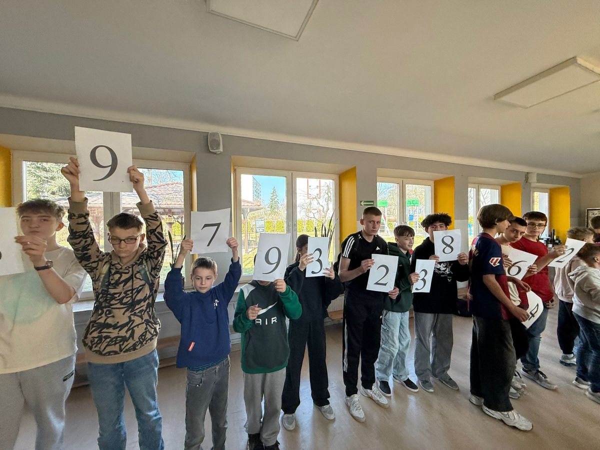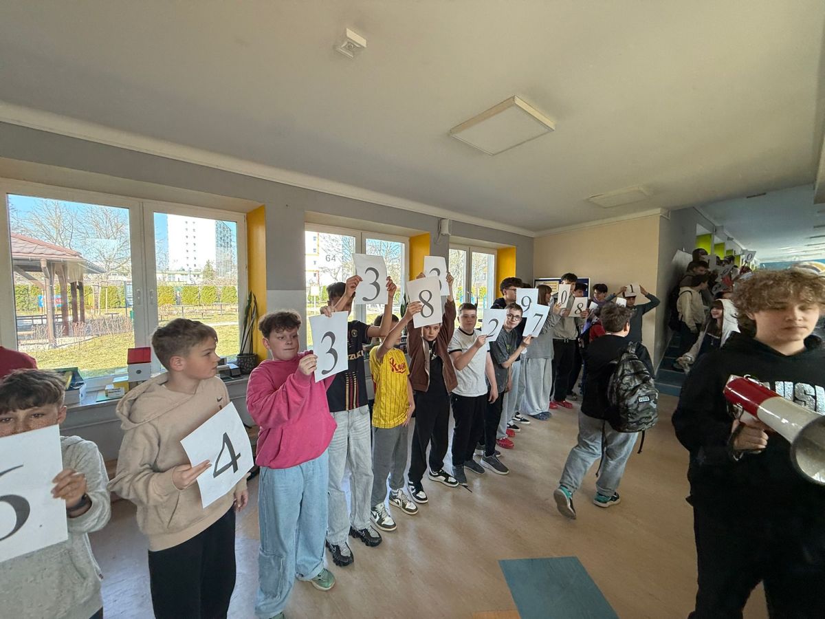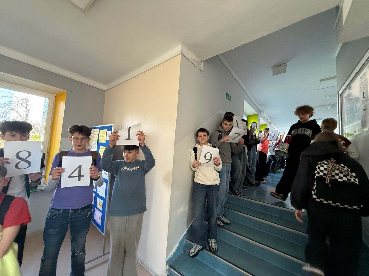 13 marca obchodziliśmy w naszej szkole Dzień Liczby Pi – święto jednej z najsłynniejszych liczb w matematyce. Z tej okazji uczniowie wzięli udział w wyjątkowej akcji „Zostań cyfrą liczby Pi”. Podczas wydarzenia uczniowie ustawili się w kolejności cyfr rozwinięcia tej liczby. Wspólna zabawa połączyła naukę z kreatywnością i pokazała, że matematyka może być ciekawa i inspirująca. W akcji wzięło udział aż 101 uczniów, dzięki czemu ustanowiliśmy szkolny rekord w liczbie osób tworzących rozwinięcie liczby Pi. Gratulujemy wszystkim uczestnikom zaangażowania i świetnej współpracy! Dziękujemy uczniom oraz nauczycielom za wspólne świętowanie i udowodnienie, że matematyka naprawdę potrafi łączyć ludzi.
