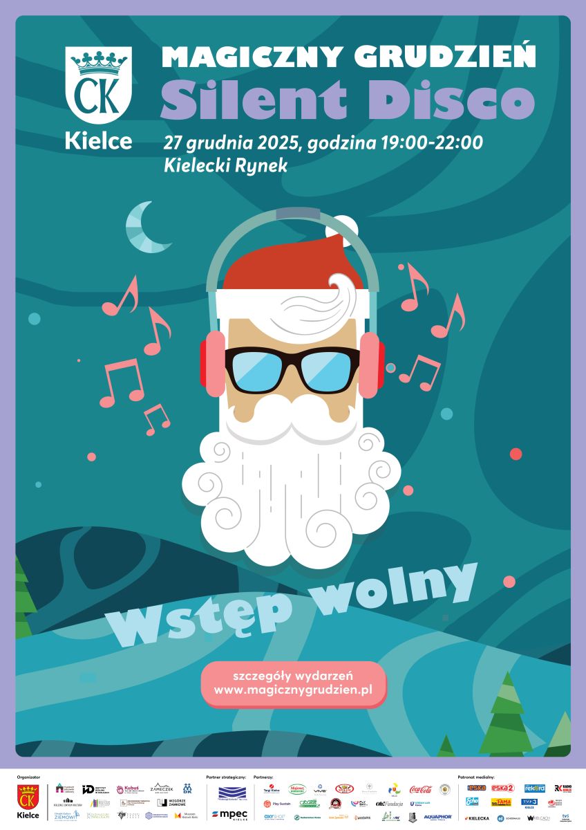 Silent Disco ponownie zawita na kielecki Rynek z energią i dobrą muzyką! W sobotę, 27 grudnia w godz. 19:00-22:00 trzech DJ-ów i trzy kanały muzyczne pozwolą wybrać ulubione brzmienia i zmieniać je w dowolnym momencie. W tym roku zwiększamy liczbę słuchawek aż do 750 sztuk. Wstęp oczywiście wolny. To świetna okazja, by spędzić grudniowy wieczór w ruchu, z uśmiechem i w wyjątkowej atmosferze Magicznego Grudnia.