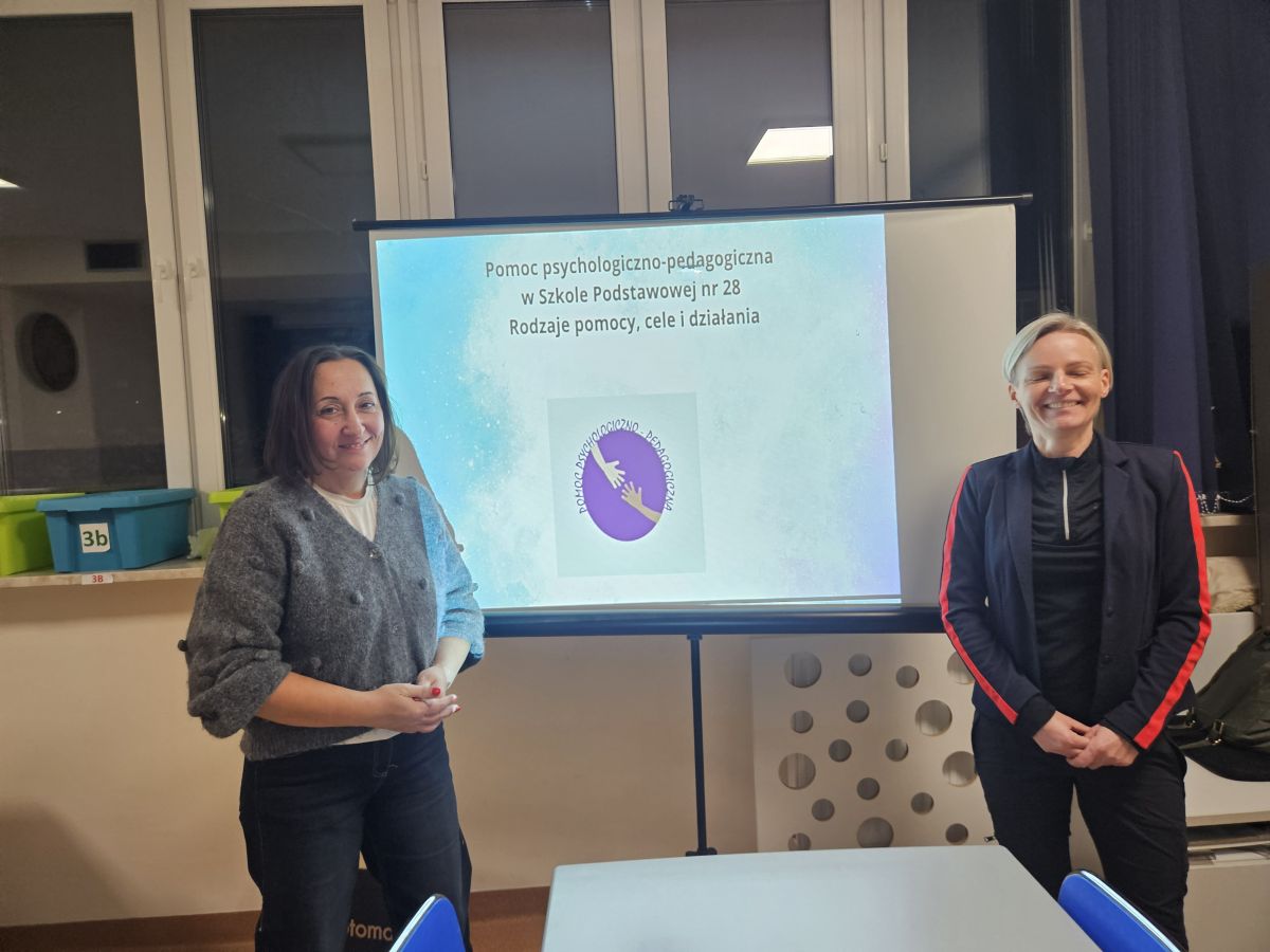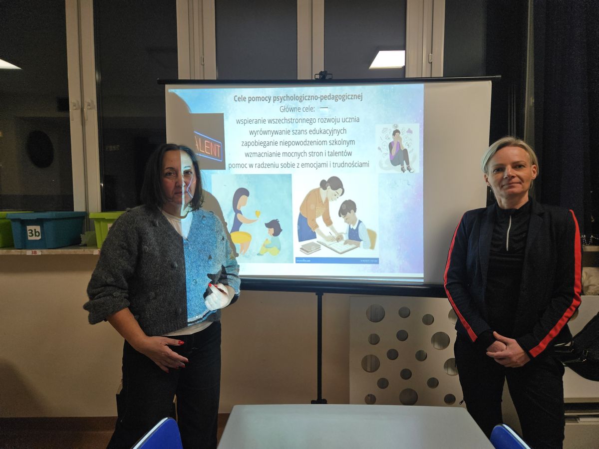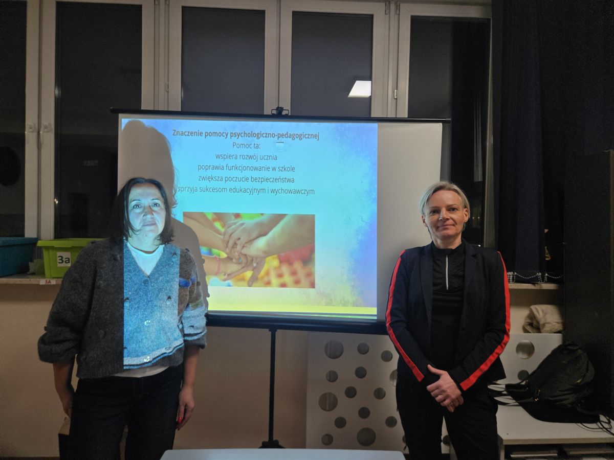 W dniu 13.01.2026 w naszej szkole odbyło się szkolenie dla rodziców z pomocy psychologiczno - pedagogicznej, które poprowadziły Panie Ewa Lenart oraz Sylwia Ksel. Omówiono formy wsparcia dostępne w szkole, rolę współpracy rodziców z nauczycielami i specjalistami oraz sposoby wczesnego rozpoznawania trudności u dzieci. Spotkanie było okazją do zadawania pytań i wymiany doświadczeń, a przekazane informacje mogą pomóc rodzicom w skuteczniejszym wspieraniu swoich dzieci w codziennym funkcjonowaniu i nauce.