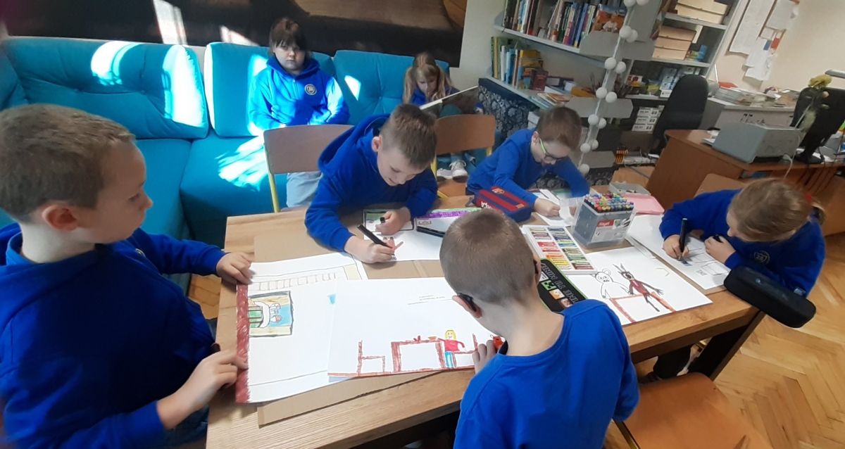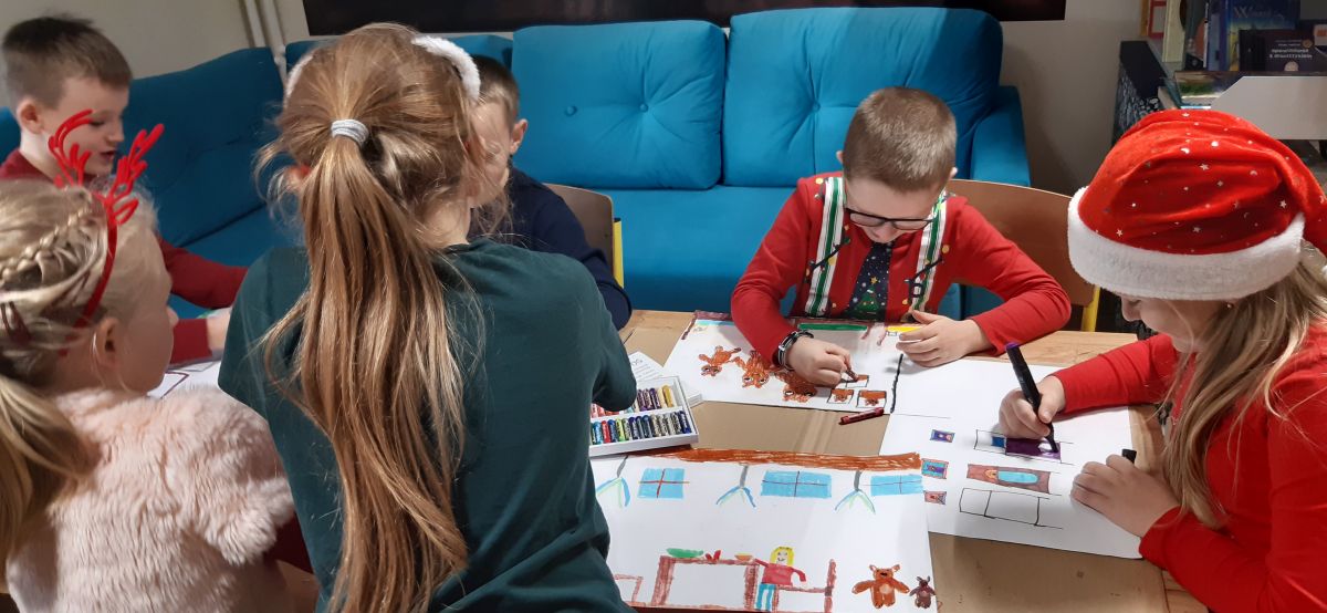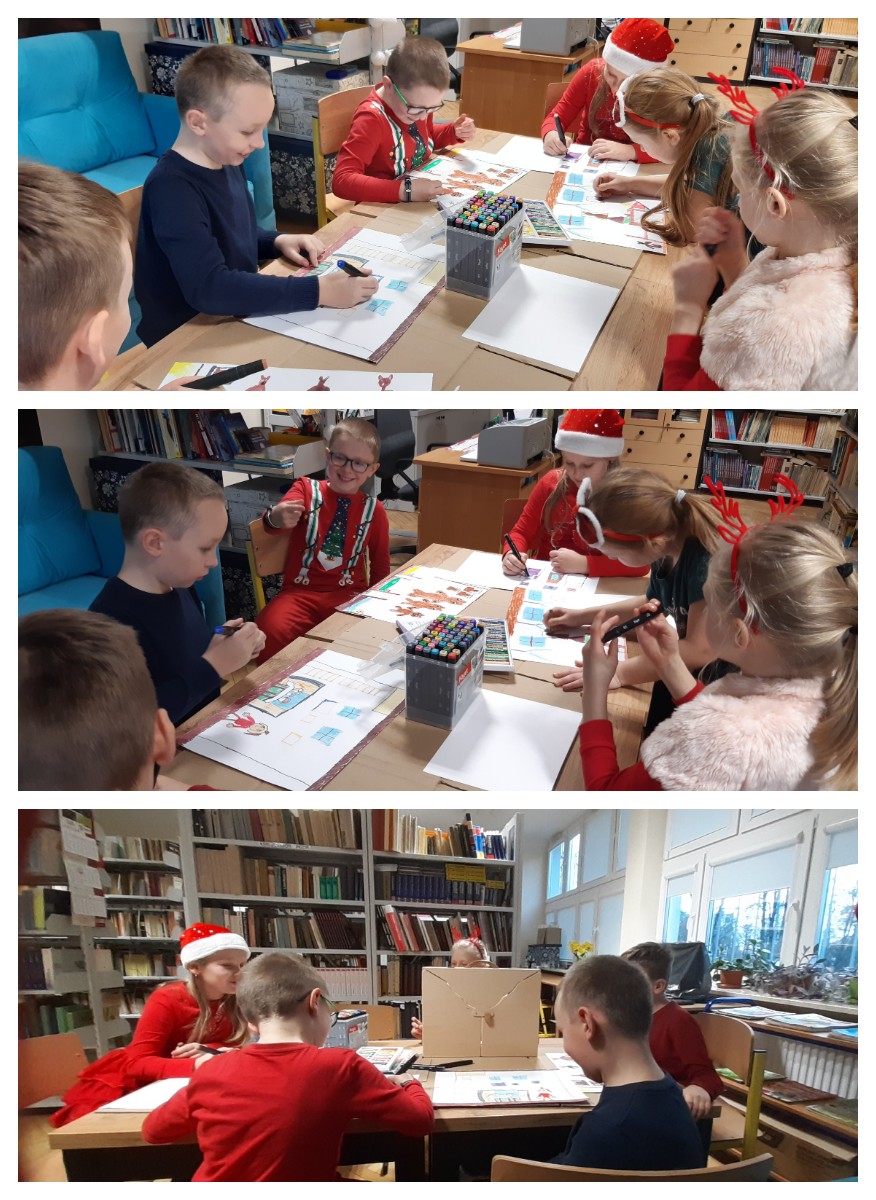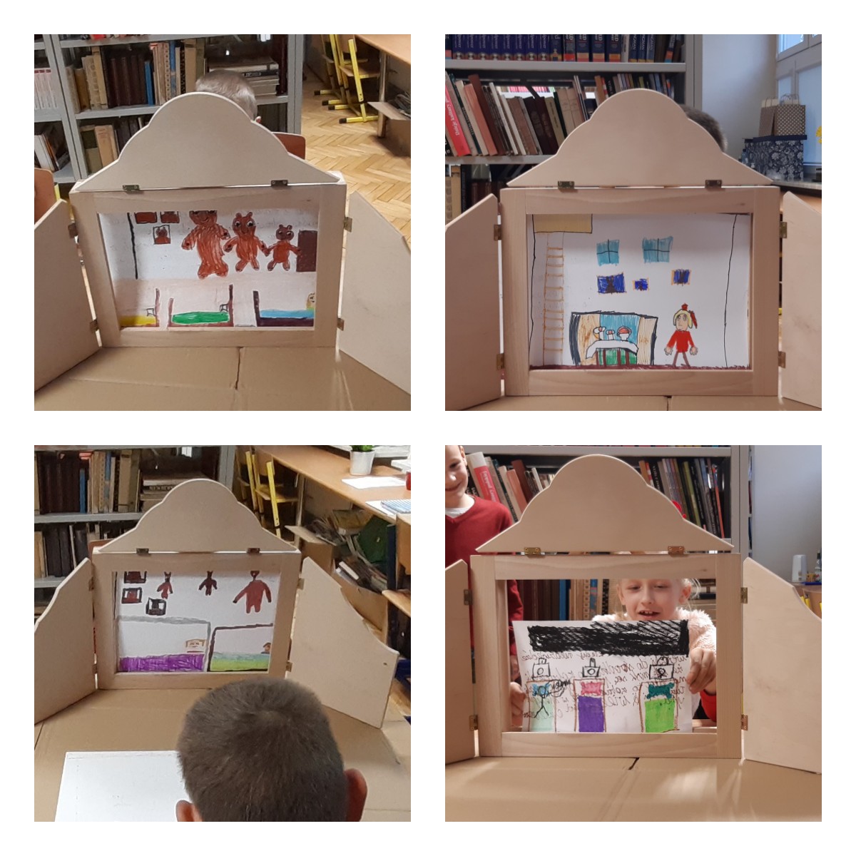 W dniach 19 listopada i 3 grudnia w ramach realizowanej innowacji pedagogicznej „Bawimy się emocjami. Czytaj, słuchaj i opowiadaj” - bajki teatrzyku kamishibai uczniowie z klasy 2c spróbowali swoich sił w wykonaniu kart narracyjnych do wybranych fragmentów baśni „Złotowłosa i trzy misie” autorki Roberta Southey. Ponadto mieli okazję do ich zaprezentowania za pomocą teatrzyku kamishibai. Oba spotkania sprzyjały zaangażowaniu uczniów i rozwinięciu umiejętności plastycznych, językowych i społecznych.