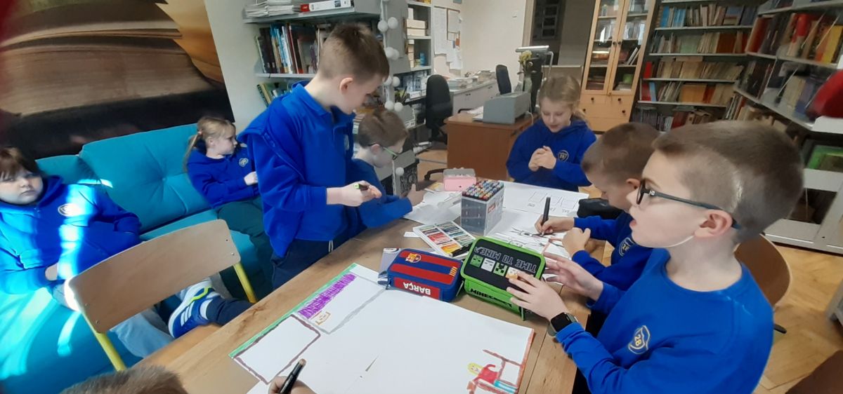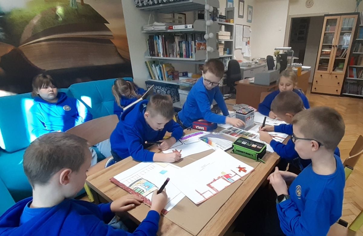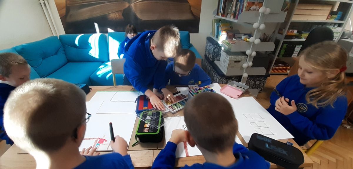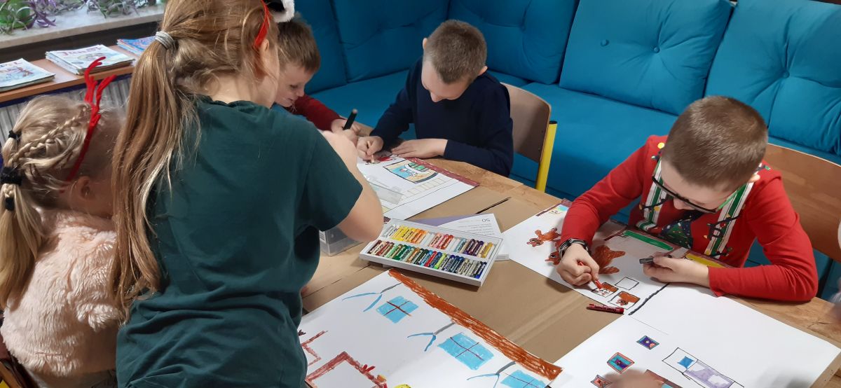 W dniach 19 listopada i 3 grudnia w ramach realizowanej innowacji pedagogicznej „Bawimy się emocjami. Czytaj, słuchaj i opowiadaj” - bajki teatrzyku kamishibai uczniowie z klasy 2c spróbowali swoich sił w wykonaniu kart narracyjnych do wybranych fragmentów baśni „Złotowłosa i trzy misie” autorki Roberta Southey. Ponadto mieli okazję do ich zaprezentowania za pomocą teatrzyku kamishibai. Oba spotkania sprzyjały zaangażowaniu uczniów i rozwinięciu umiejętności plastycznych, językowych i społecznych.
