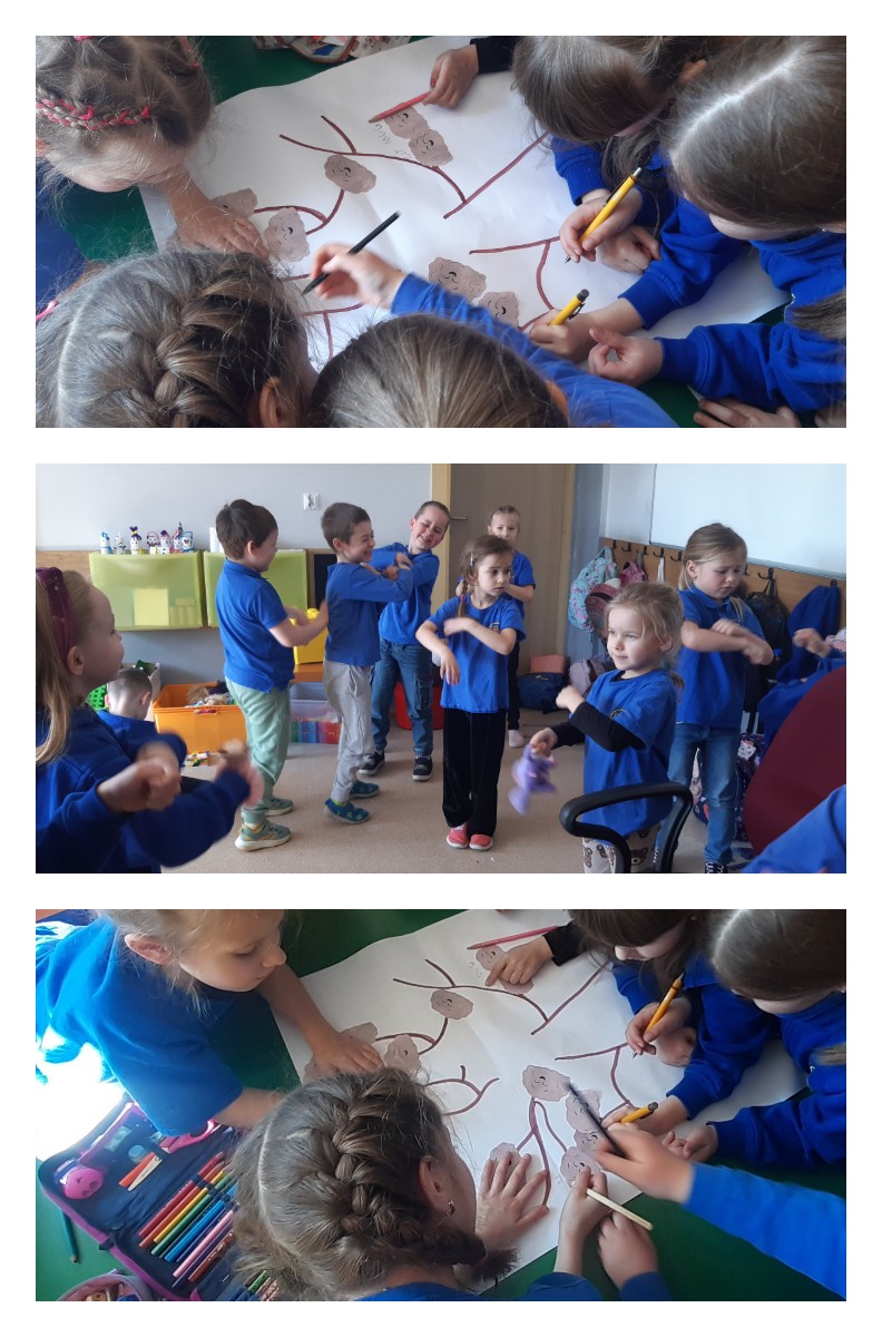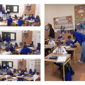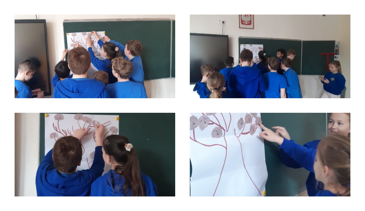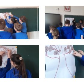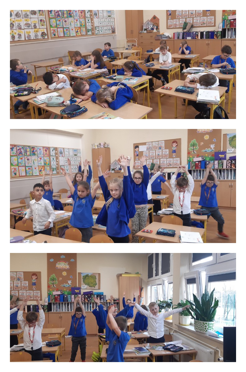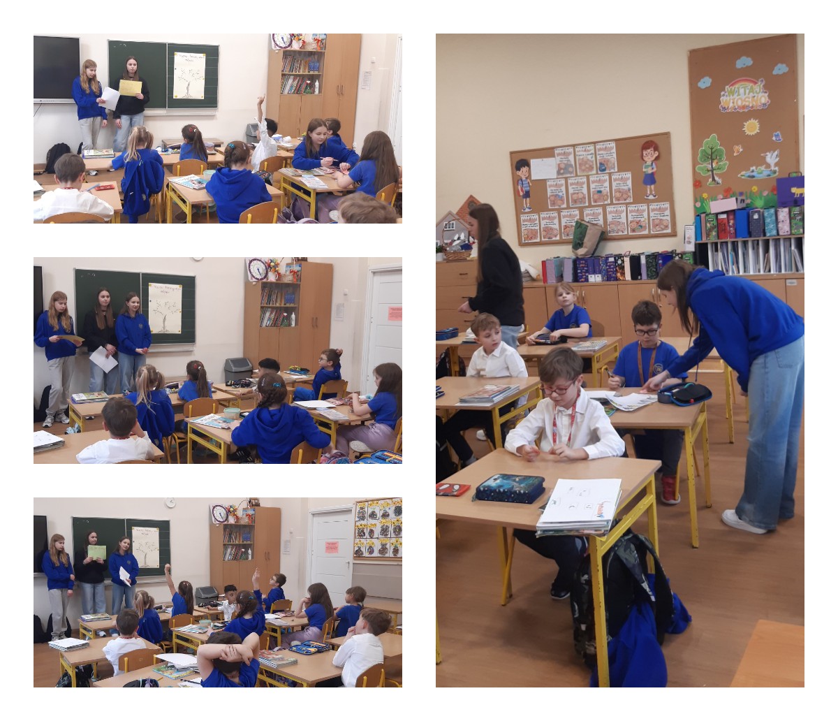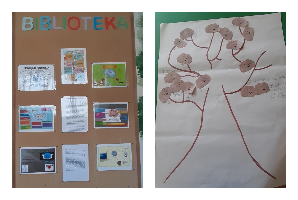 W dniach od 18 marca do 19 marca 2026 r. p. K. Buk we współpracy z p. Anną Nowakowską oraz uczennicami klasy 8c zrealizowały w ramach Europejskiego Dnia Mózgu warsztat pt.” Mózg kreatywny - skąd się biorą pomysły i co lubi mózg w świecie ekranów?”. W warsztatach uczestniczyli m.in: uczniowie z zerówki, klasy 1c, 3c. Uczniowie dowiedzieli się jak ważna jest dla mózgu zdrowa dieta, ruch oraz odpoczynek od ekranów. Uczniowie poznali trzy gesty “kreatywnego mózgu” - pomysł rośnie, pomysł jest cichy i szybki. Ponadto odpowiadali na pytania: Co by było, gdyby...? rozwijając wyobraźnię. Na zakończenie warsztatu uczniowie na przygotowanych mózgach udzielali odpowiedzi Co lubi nasz mózg? i przyklejali je na planszę “Drzewo kreatywnych mózgów”. Z okazji dnia mózgu na korytarzu szkolnym została również wyeksponowana gazetka tematyczna.