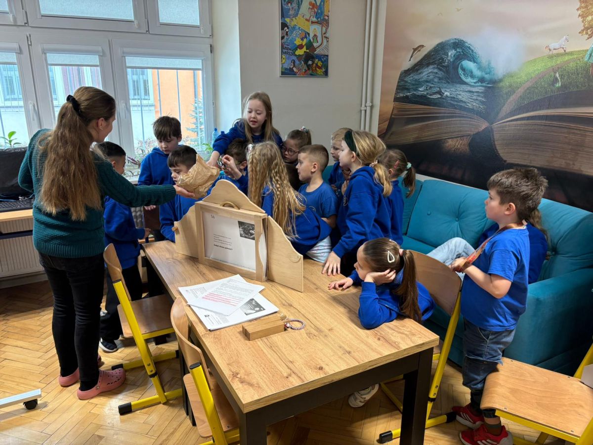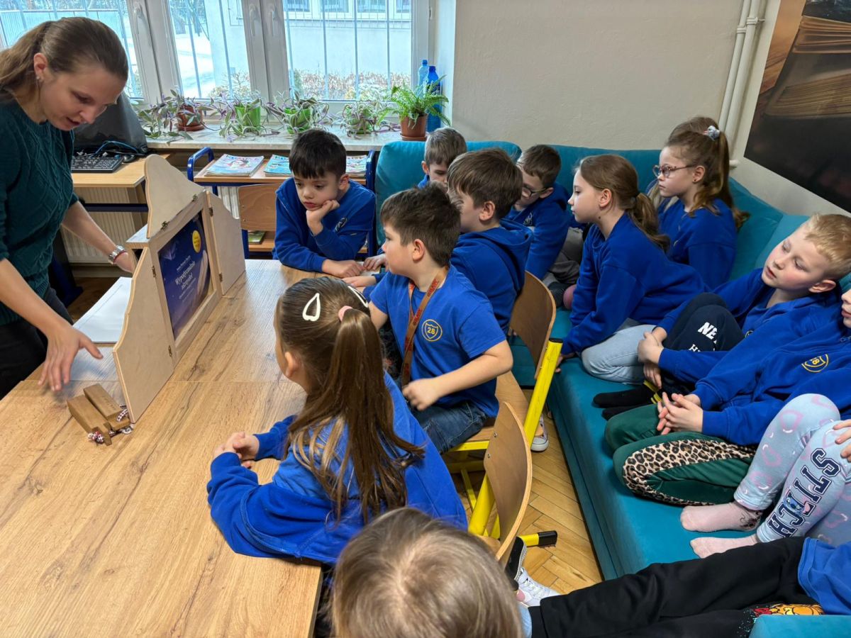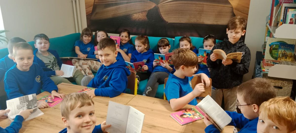W dniach od 13.02.2026r. do 24.02.2026 r. w bibliotece szkolnej odbyło się pasowanie na czytelnika uczniów klasy 1a, 1b i 1c. Uczniowie na początku spotkania dowiedzieli się jakich mamy znanych baśniopisarzy. Wzięli udział w quzie, w którym musieli odgadnąć z jakiej to baśni przedmiot, postać. Następnie poznali regulaminy korzystania z książek oraz podręczników. Ponadto wysłuchali opowiadania teatrzyku kamishibai pt. „Wypożyczalnia skrzydeł” Iwony Pietrzak – Płachty. Następnie oficjalnie zostali pasowani na czytelników biblioteki szkolnej i otrzymali słodki upominek.