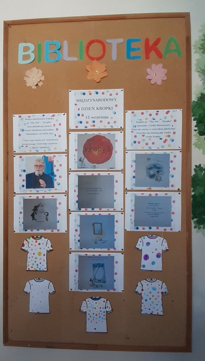 15 września przypadał Międzynarodowy Dzień Kropki. Z tej okazji odbyła się w bibliotece i oddziale przedszkolnym akcja czytelnicza promująca książkę pt : „The Dot” – „Kropka” autorstwa Petera Hamiltona Reynoldsa. Książka opowiada o Vashit dziewczynce, która nie wierzy w swój talent plastyczny. Wszystko się zmienia gdy Vashit rysuje kropkę.