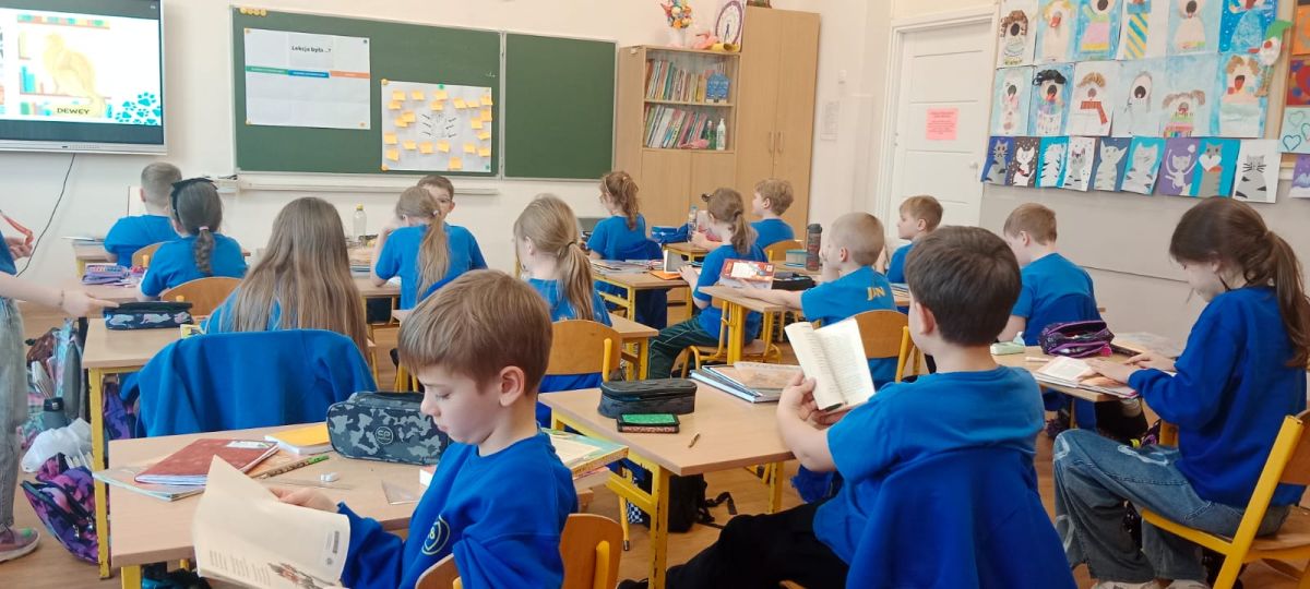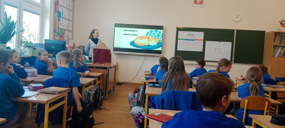 Podczas zajęć uczniowie dowiedzieli się kiedy obchodzony jest dzień kota, poznali kocich bohaterów książek. Każdy z uczniów mógł przejrzeć pozycje książkowe na temat kotów.