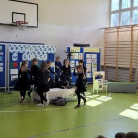 W ramach projektu edukacyjnego "Samsung Stacja Galaxy. Bezpieczeństwo w sieci", uczniowie klasy 2c przygotowali i zaprezentowali przedstawienie pt. "Bezpieczny Internet". Spektakl poruszał temat zagrożeń wynikających z niewłaściwego korzystania z Internetu, a także zawierał cenne wskazówki, jak bezpiecznie i odpowiedzialnie poruszać się w świecie online.