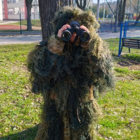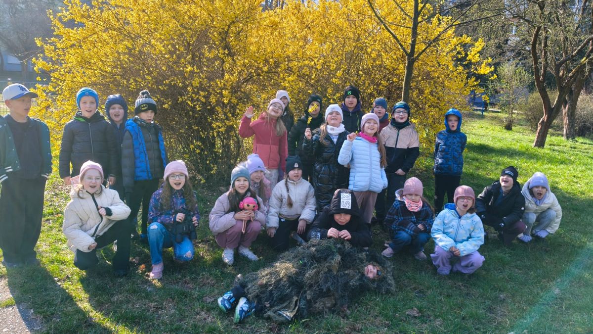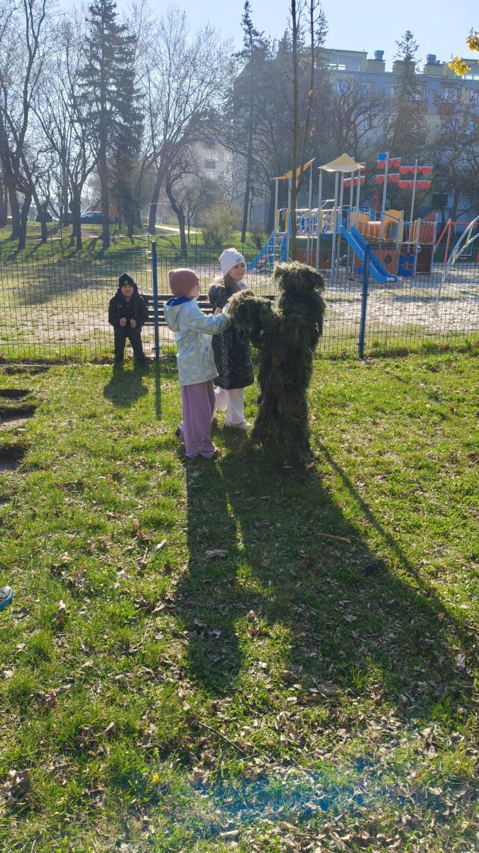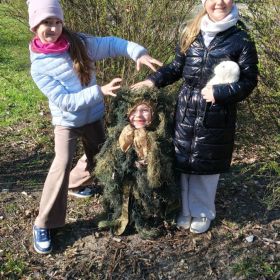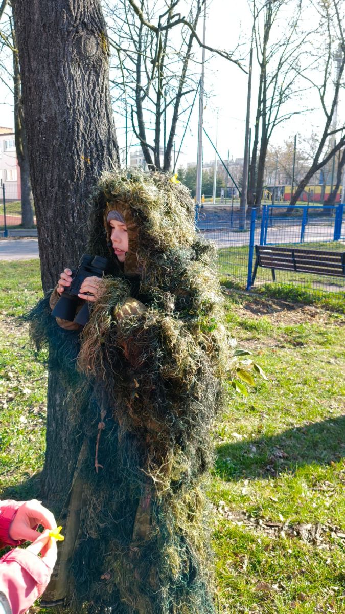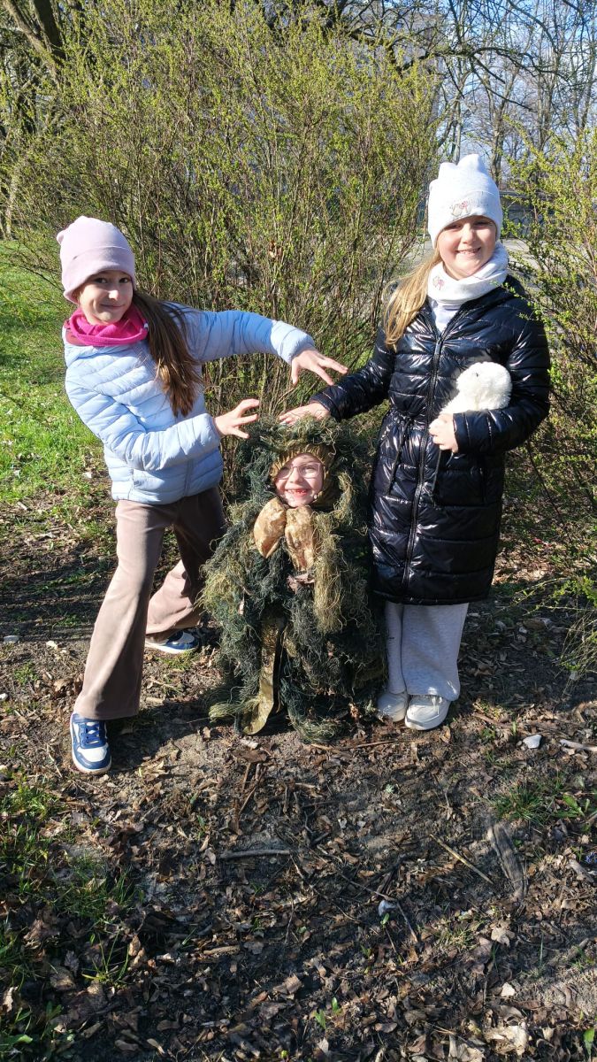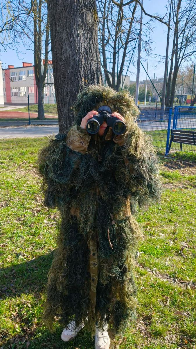 Klasa 2a zamieniła dziś szkolne ławki na lekcje w terenie. Podczas zajęć nasi uczniowie mieli okazję poczuć się jak prawdziwi ornitolodzy – dosłownie i w przenośni, za sprawą specjalnego kamuflażu , który pozwalał im pozostać niezauważonymi przez ptaki i poczuć się jak prawdziwi badacze .