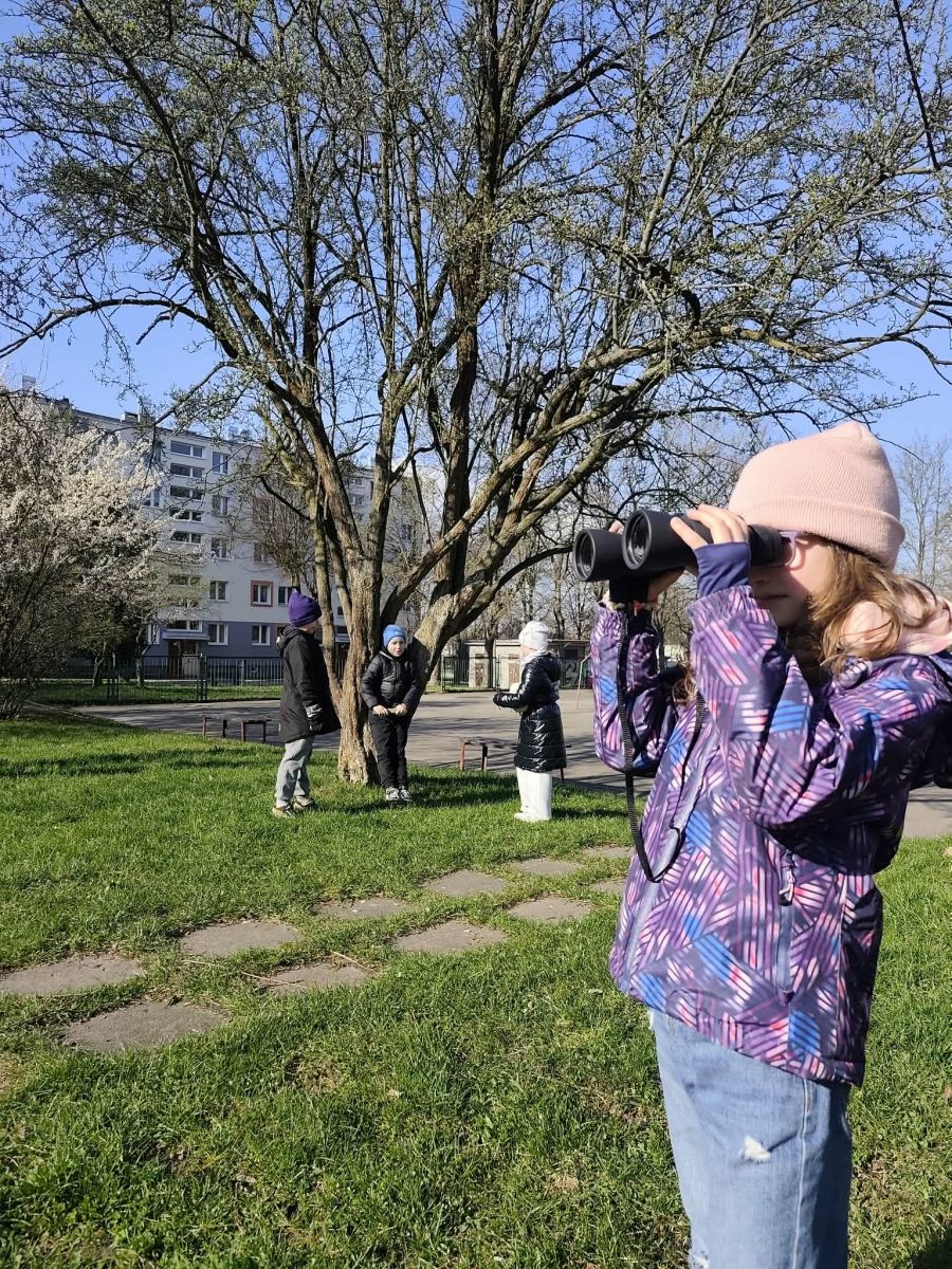 Z lornetką w dłoniach dzieci cierpliwie podglądały życie ptaków , uczyły się je odróżniać oraz rozpoznawać ich ogłosy. Największą ekscytację wzbudziło znalezienie prawdziwego gniazda, które pozwoliło im z bliska przyjrzeć się kunsztownej pracy skrzydlatych budowniczych.