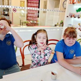 Klasa 1c wybrała się do Magii Karmel, żeby dowiedzieć się jak powstaje ulubiony przysmak dzieci-czekolada! W trakcie multimedialnej prezentacji uczniowie zobaczyli proces produkcji czekolady, spróbowali oryginalnych ziaren kakaowca oraz prawdziwej gorzkiej czekolady. Następnie własnoręcznie ozdobili tabliczkę czekolady, którą zabrali do domu.