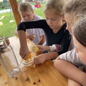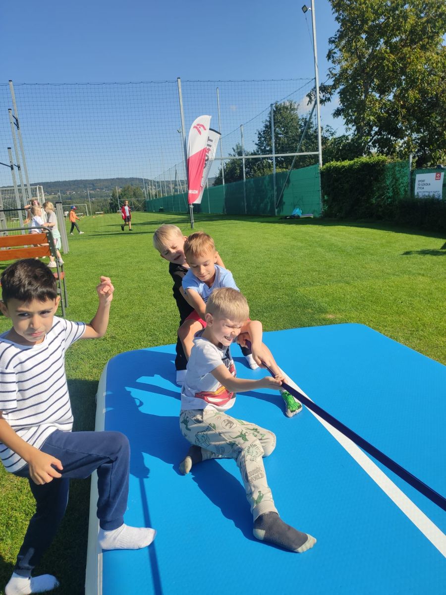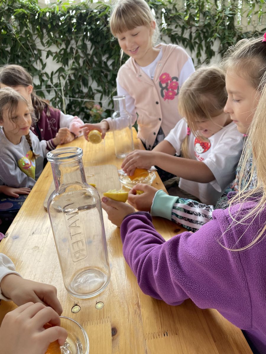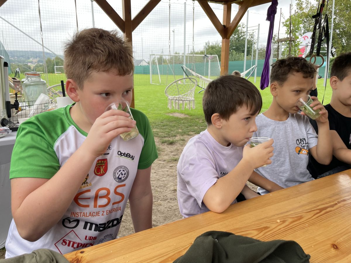 Uczniowie z najmłodszych klas wzięli udział w warsztatach sportowych „Aktywna lekcja”, które odbyły się w Leszczynach, w malowniczym otoczeniu przyrody. Dzień wypełniony był ruchem, zabawą i zdrowym stylem życia – dzieci uczestniczyły w grach zespołowych na boisku, przygotowywały naturalne izotoniki, a także miały czas na swobodną zabawę w wyjątkowej atmosferze.