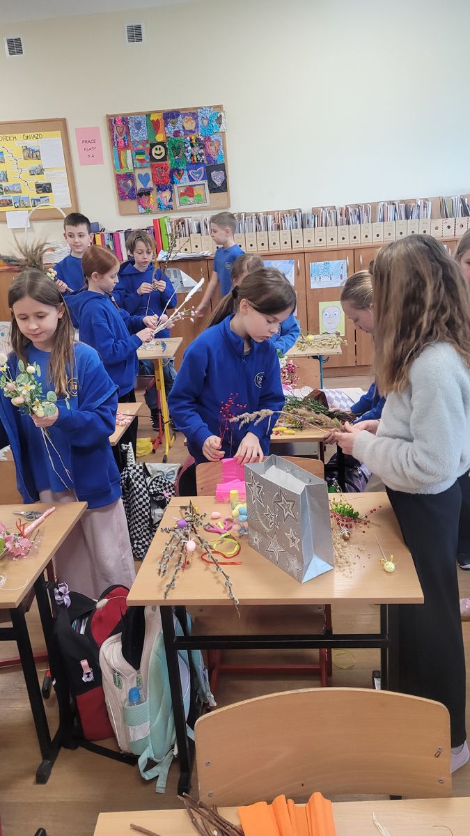 18 marca w klasie 3a zapanował artystyczny bałagan. Każde dziecko wykonało palmy wielkanocne ,jedną dla siebie ,a kolejne na świąteczny kiermasz. Uczniowie wykazali się niebywałą pomysłowością i kreatywnością. Oto krótka fotorelacja z warsztatów.