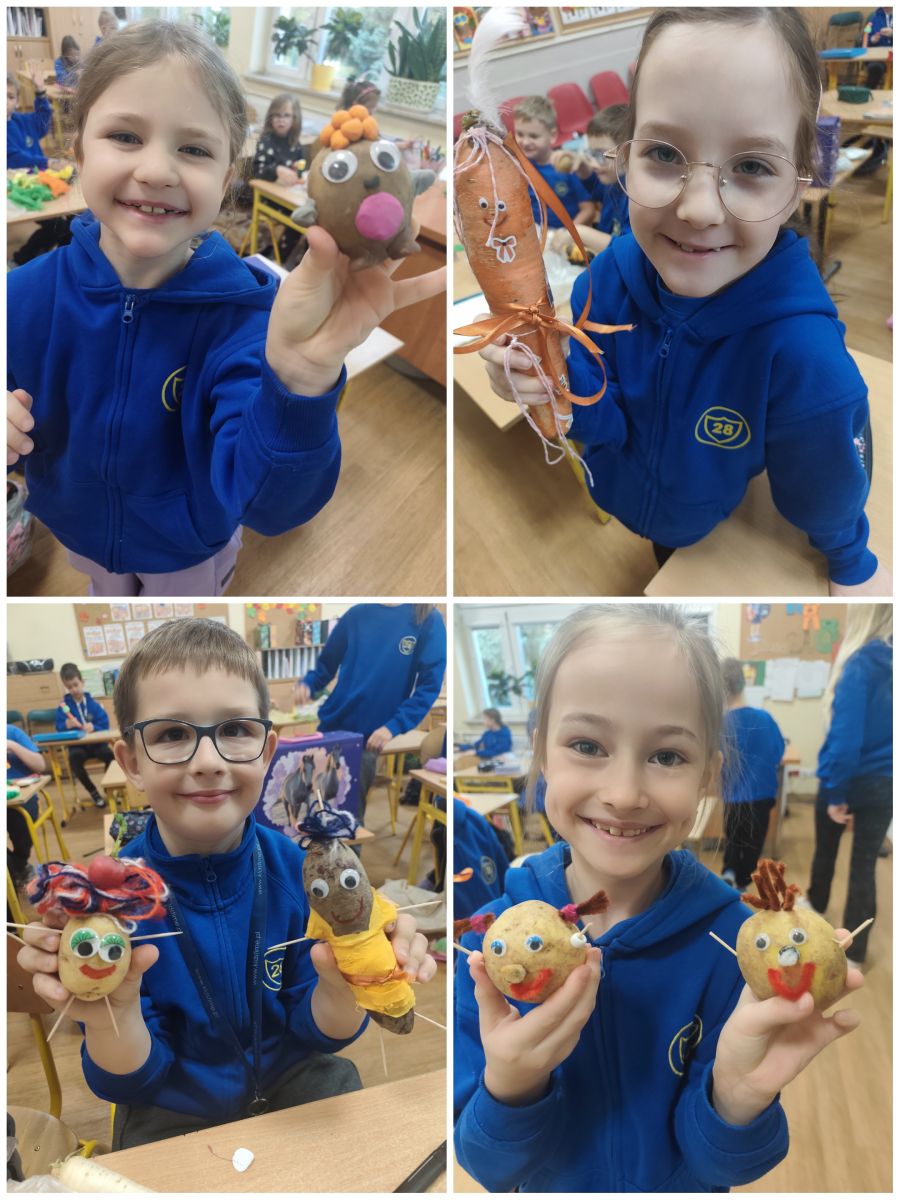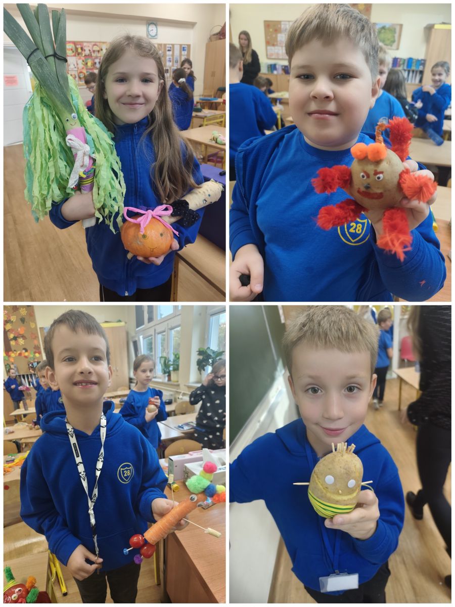 Zadaniem dzieci było stworzenie własnych kukiełek z prawdziwych warzyw. Mali twórcy zamienili szkolne sale w prawdziwe stragany pełne barwnych postaci. Uczniowie wykazali się ogromną pomysłowością, tworząc z warzyw zabawne postacie, które zdawały się prowadzić ożywione rozmowy, zupełnie jak w wierszu Brzechwy.