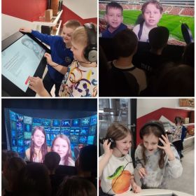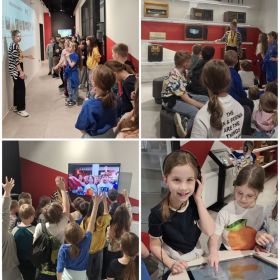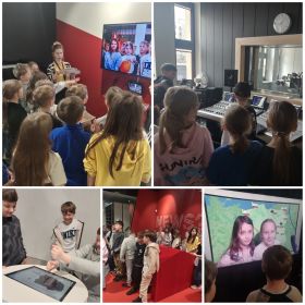 Wspaniałą atrakcją w Centrum Edukacji Medialnej była dla uczniów strefa rozszerzonej rzeczywistości, czyli interaktywne zabawy z modelami 3D i studio Green Screen, gdzie uczniowie mogli się wcielić w rolę prezentera i poprowadzić krótkiserwis informacyjny czy prognozę pogody. Następnie uczniowie zwiedzili studio radiowe i studioemisyjne, poznali tajniki zawodów m.in. dziennikarzy, radiowców czy operatorów dźwięku .