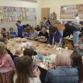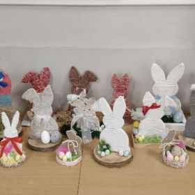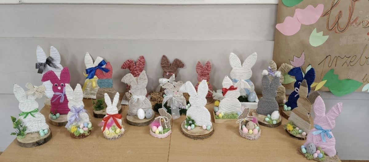 Rodzinna współpraca, wymiana pomysłów i radosna atmosfera zaowocowały pięknymi dekoracjami, które już niebawem trafią na kiermasze wielkanocne.