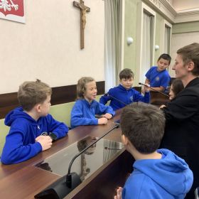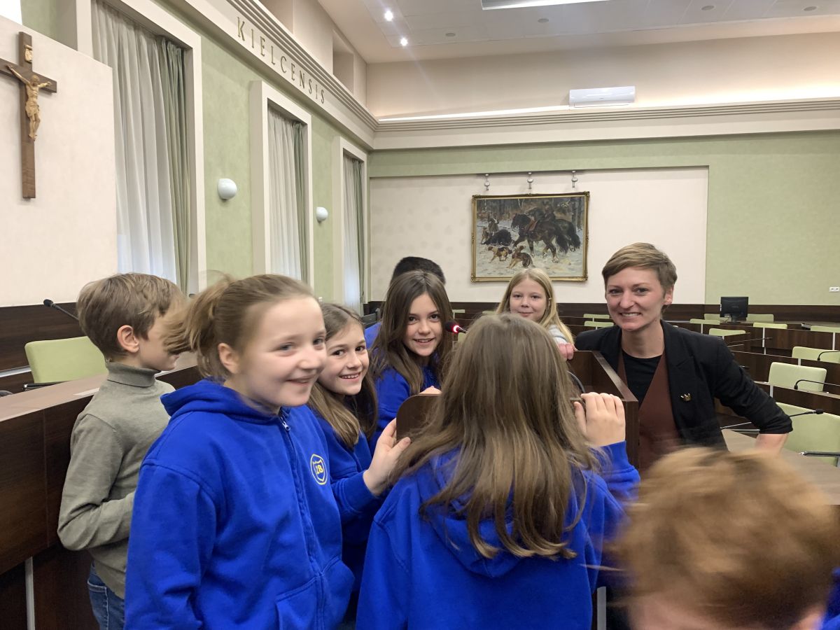 27 listopada uczniowie klasy 3b odwiedzili Prezydentkę Miasta Kielce. Podczas wizyty w kieleckim Ratuszu dowiedzieli się, jakie są zadania Urzędu Miasta oraz z jakimi sprawami mieszkańcy miasta mogą tutaj przychodzić.