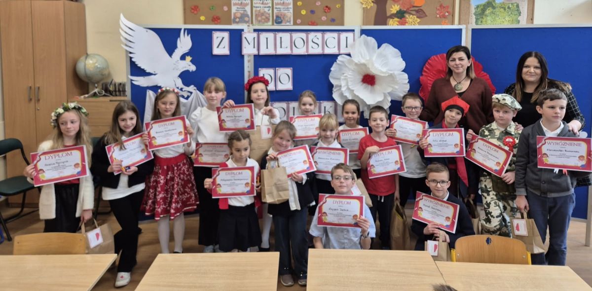 skierowany był do najmłodszej społeczności naszej szkoły : dzieci z oddziału przedszkolnego oraz klas 1-3. Głównym celem wydarzenia było rozwijanie zdolności recytatorskich, a także kształtowanie postaw patriotycznych i miłości do Ojczyzny poprzez