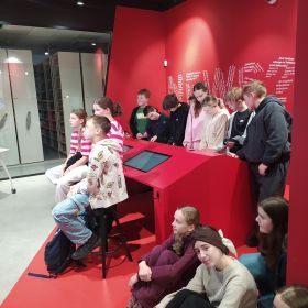 - 📱 Wziąć udział w interaktywnych warsztatach w Centrum Edukacji Medialnej, gdzie uczyli się rozpoznawać fake newsy i poznali historię radia – od zabytkowych odbiorników przez starodawne reklamy po dzisiejszą erę podcastów.