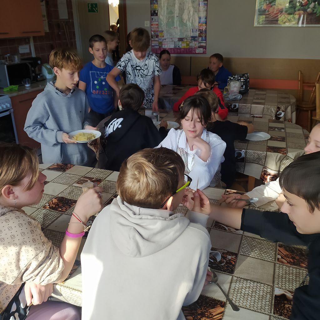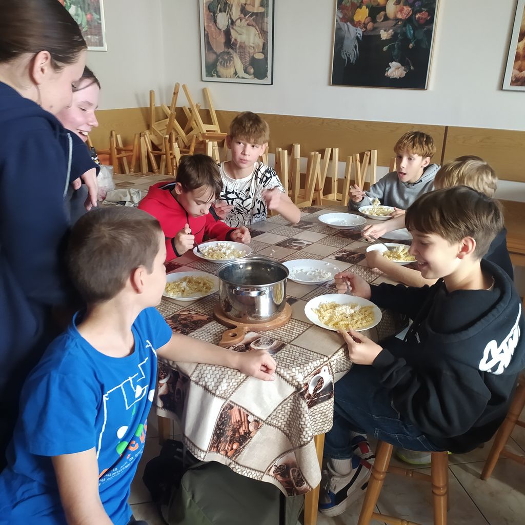 Podczas wspólnego pichcenia szóstoklasiści nie tylko uczyli się zasad zdrowego żywienia, ale także pracy w zespole i odpowiedzialności za wspólne zadania. Atmosfera była świetna, a efekty – smaczne i pełne składników odżywczych.